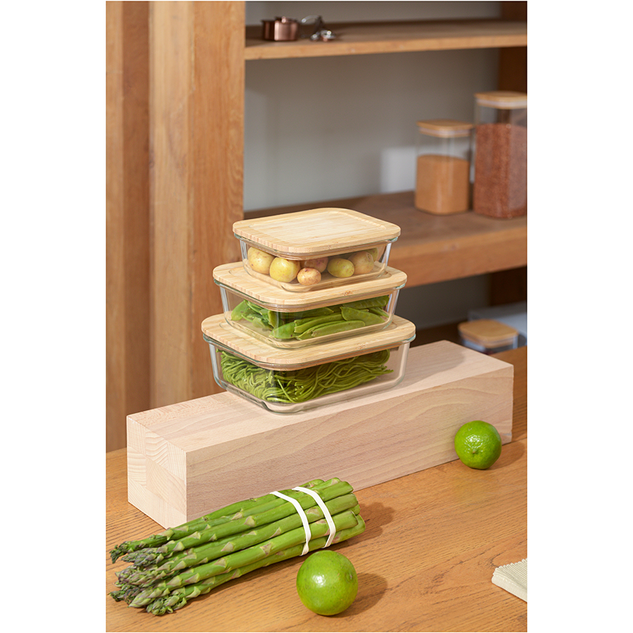 Контейнер с бамбуковой крышкой отлично подойдет для хранения и запекания продуктов, в том числе готовых блюд.