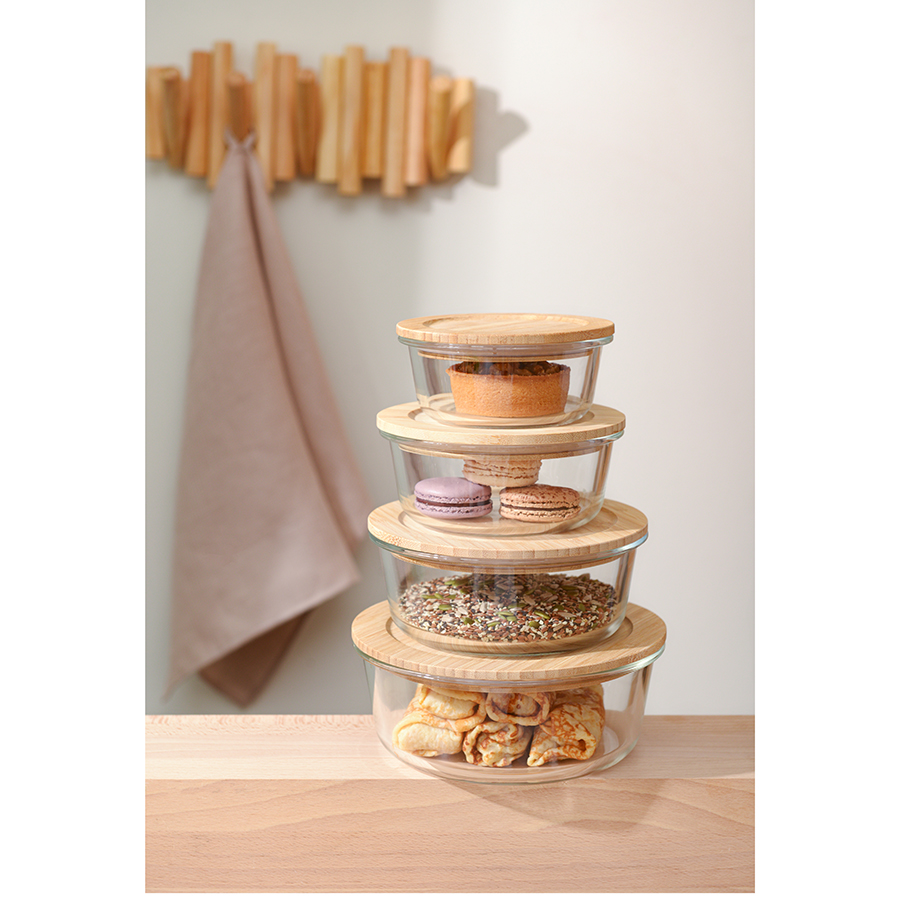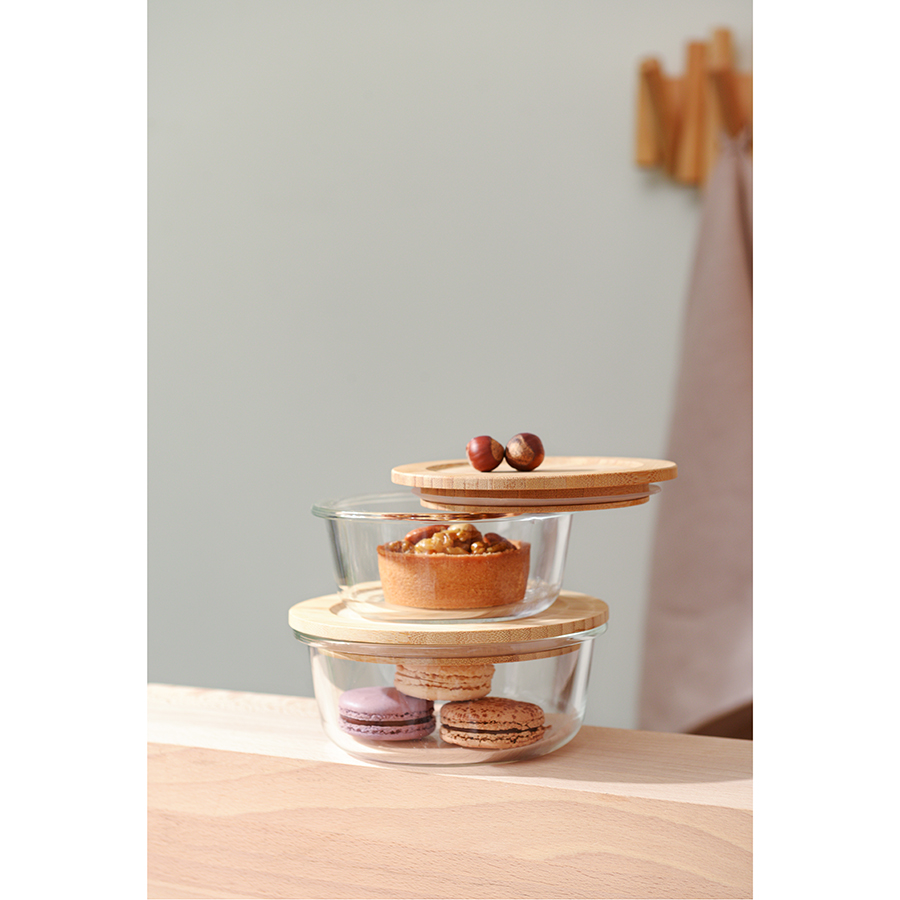 Контейнер с бамбуковой крышкой отлично подойдет для хранения и запекания продуктов, в том числе готовых блюд.
