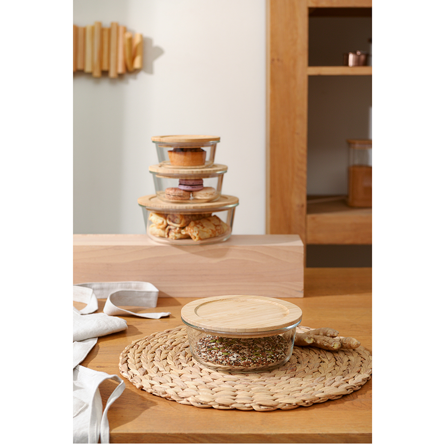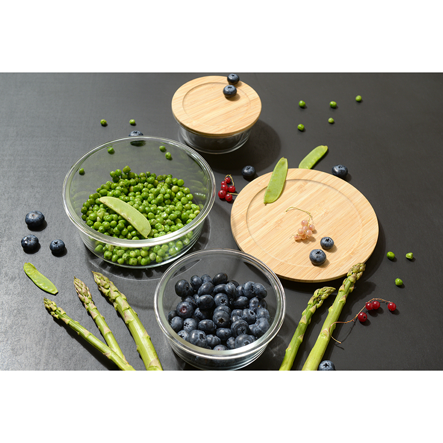 Контейнер с бамбуковой крышкой отлично подойдет для хранения и запекания продуктов, в том числе готовых блюд.