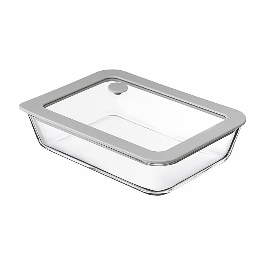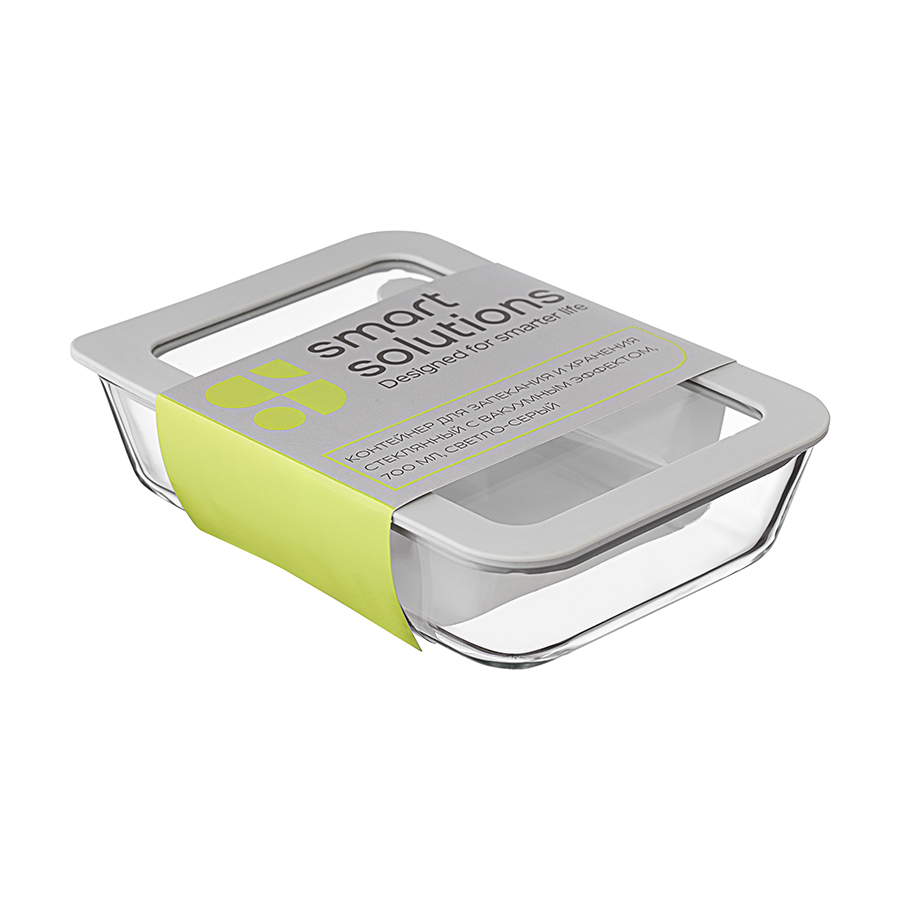 Материалы: боросиликатное стекло, силикон. Размеры: 14,5х19,5х5 см. Объем: 700 мл. Цвет: светло-серый.