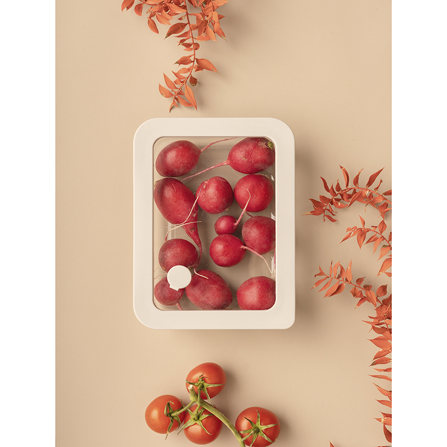 - Вакуумный эффект обеспечивает герметичность, защищая продукты от попадания воздуха и влаги, что продлевает срок их хранения.