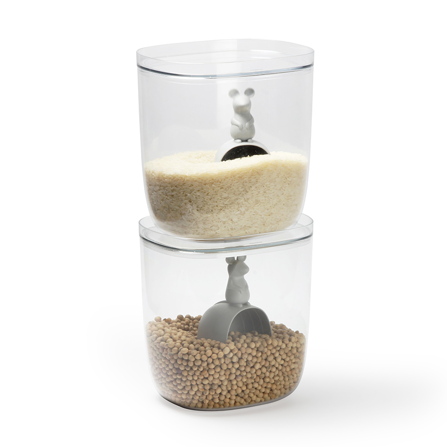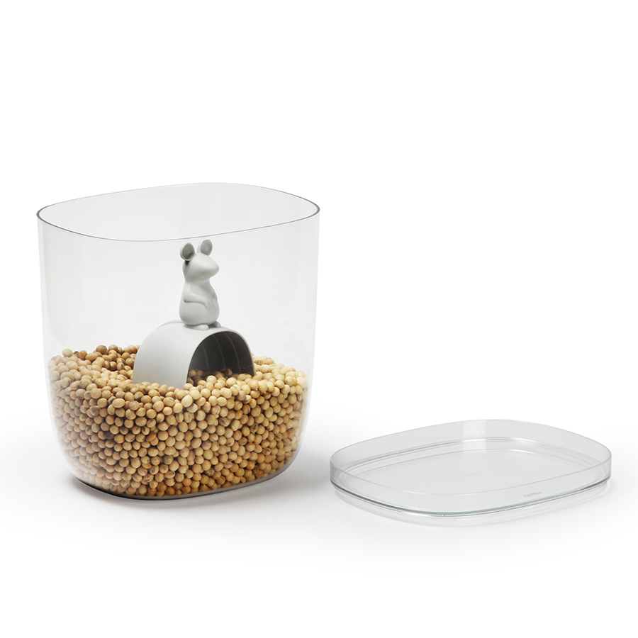 Контейнер с мерной ложкой Lucky Mouse поможет оживить интерьер современной кухни и упростить множество кулинарных операций. Емкость предназначена для хранения сыпучих продуктов: круп, муки, сахара, соли или чая. Мерная ложка объемом 180 мл станет незаменимым аксессуаром во время готовки любимых блюд. Ручку изделия дизайнеры заменили фигуркой забавной мышки. Для изготовления контейнера и ложки производитель использует экологически чистый ABS-пластик, который не впитывает запахи, не меняет вкус и аромат продуктов.