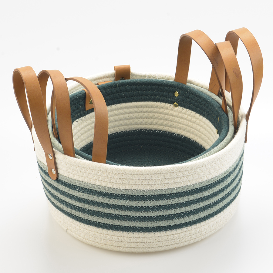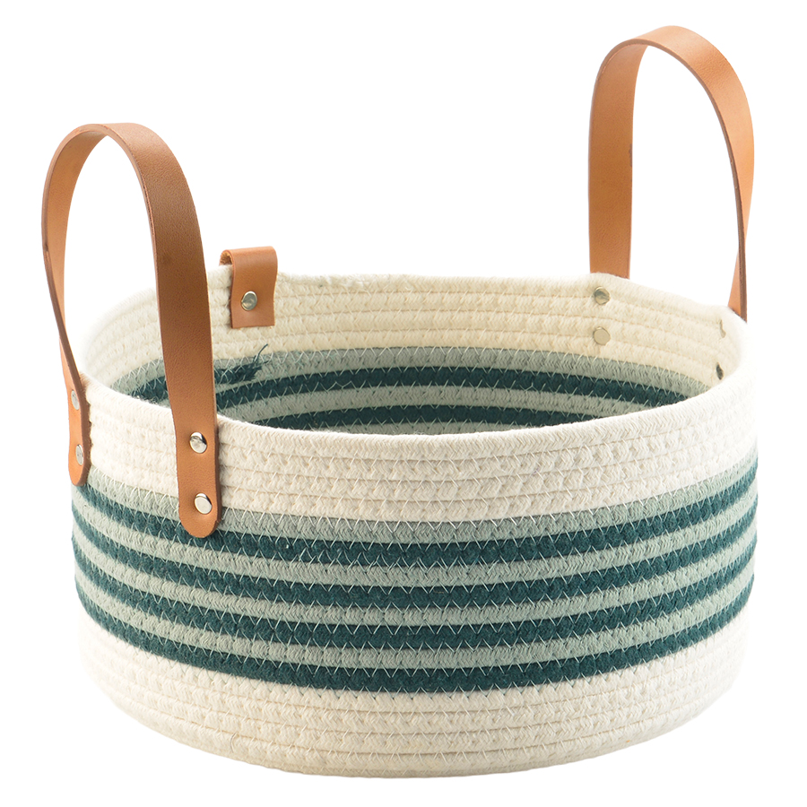 Корзина Helly – прекрасный вариант для хранения различных предметов. Благодаря стильному дизайну такой контейнер отлично вписывается в современный интерьер гостиной, спальни или прихожей. Изделие выполнено из хлопковой нити с добавлением полиэстера, что гарантирует ему прочность, устойчивость к истиранию и привлекательный вид на протяжении всего срока службы. Изюминку корзине придают плетеный корпус и ручки из полиуретана, которые также обеспечивают удобную переноску.