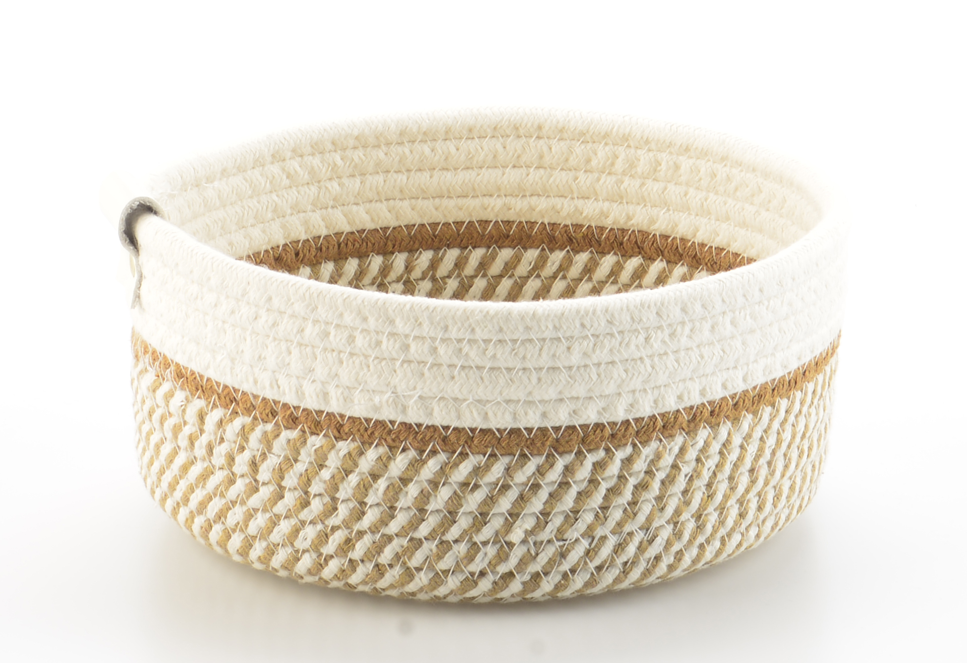 Lucy – стильная и удобная корзина для хранения небольших предметов: инструменты для творчества и рукоделия, различные аксессуары и прочее. Изюминку изделию придают плетеный корпус и интересное цветовое решение. Сочетание хлопка и полиэстера отличается экологичностью, высокой устойчивостью к износу, легко очищается от загрязнений. Компактные размеры позволяют разместить такой контейнер для хранения в любом удобном месте – на столе, тумбе, подоконнике, стеллаже или полке.