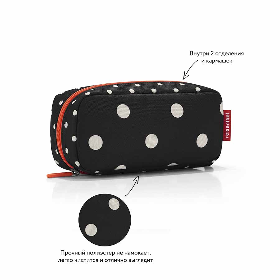 Косметичка сделана из высококачественного полиэстера. Этот материал является водоотталкивающим, благодаря чему аксессуар не намокает и меньше пачкается, а значит – пользоваться им еще проще.