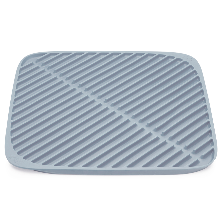 Благодаря резиновым ребрам, вода стекает прямо в центральный желоб. Чтобы аккуратно слить ее, достаточно просто приподнять уголки по обеим сторонам коврика и наклонить его в раковину. Мягкая резиновая поверхность защищает хрупкую посуду от повреждений. Материал не содержит бисфенол-А.