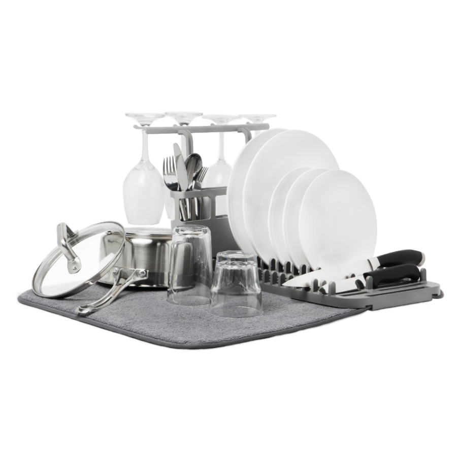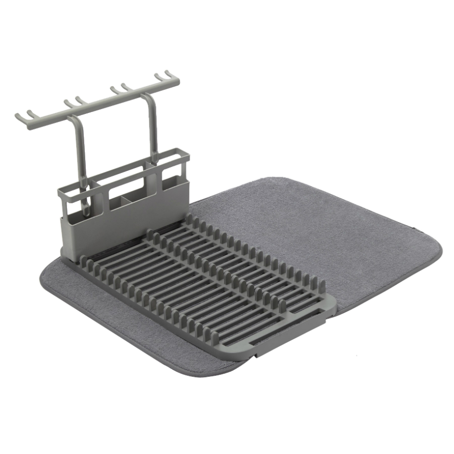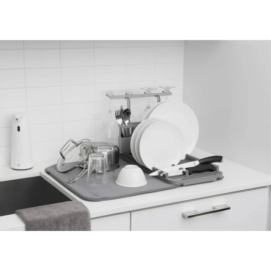 Функциональный предмет 2-в-1, в котором объединены коврик и подставка для посуды, предназначено для сушки тарелок, столовых приборов, чашек и бокалов.