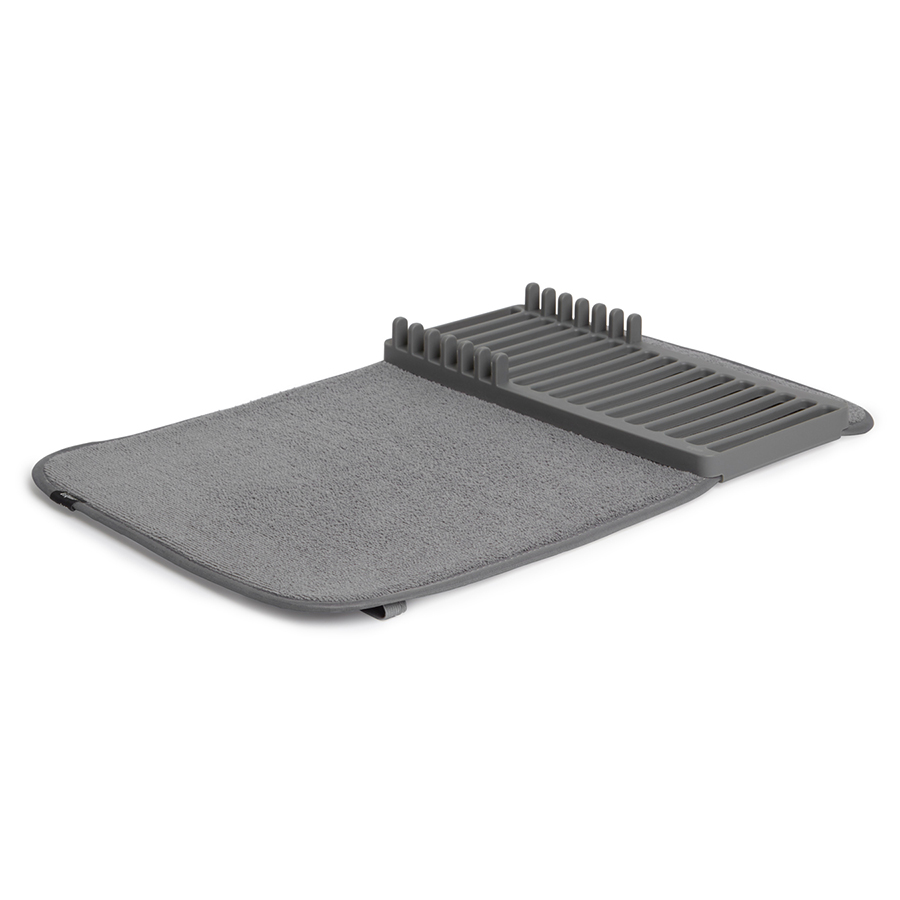 Коврик удобен для сушки чашек, стаканов и глубоких мисок, а подставка — для тарелок и блюдец. Легко разбирается для удобной чистки. Для хранения компактно складывается и закрепляется с помощью эластичных завязок. Размеры в разложенном виде: 61 x 45.8 x 2.5 см.