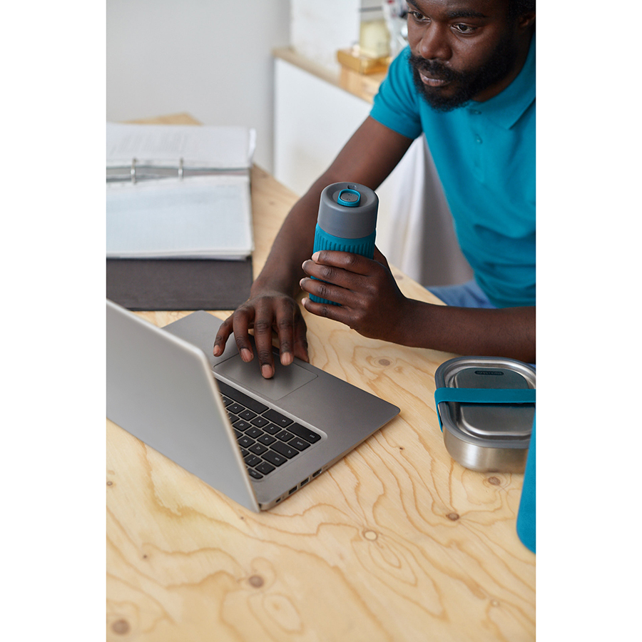 Кружку легко открывать и закрывать одной рукой. Силиконовый чехол защищает емкость из выдувного стекла от повреждений и не скользит. Боросиликатное стекло хорошо удерживает температуру и отличается прочностью. Кружка помещается в велосипедные и автомобильные подстаканники. Она пригодна для газированных напитков. Материал не содержит бисфенола-А и фталатов. Объем: 340 мл.