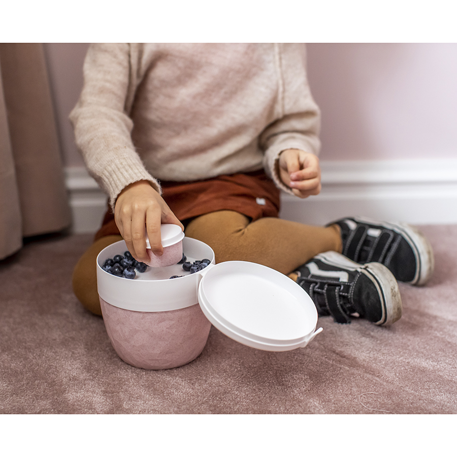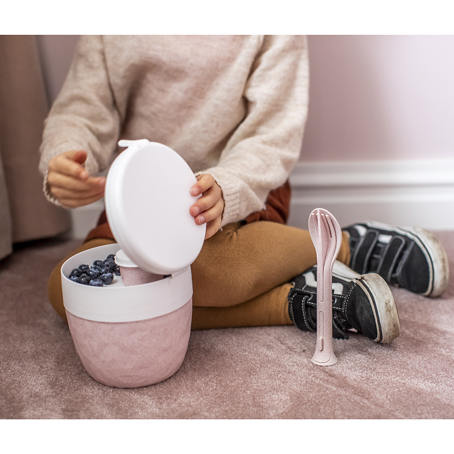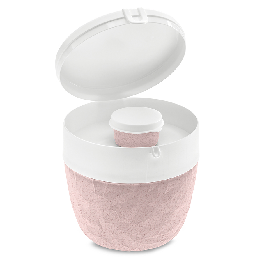 Ланч-бокс располагает тремя секциями: емкостью для основного блюда, съемным отсеком для топпинга и соусницей. Изделие отличается высокой прочностью. Материал не содержит бисфенола-А и меламина.