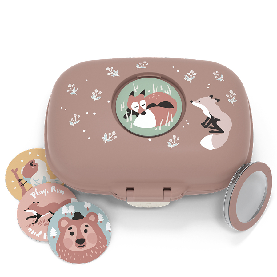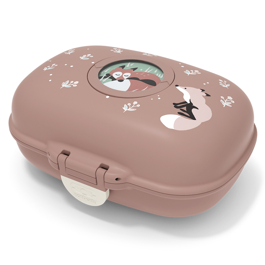 Ланч-бокс изготовлен из качественного пищевого пластика PBT (,полибутилентерефталат),, который полностью безопасен как для человека, так и для окружающей среды. PBT не содержит бисфенола-А и других вредных веществ, а также легко перерабатывается. Надежный замок обеспечивает полную герметичность. Съемные жетоны на крышке ланч-бокса позволяют детям создавать свой собственный дизайн. В комплект входят 4 жетона, которые можно менять.