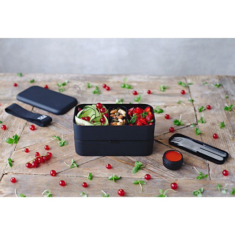 В современном мире здоровое питание - залог успеха. Ланч-боксы Monbento полностью сохраняют полезные свойства продуктов, герметичны и изготовлены из безопасного пищевого пластика. Удобный формат из 2 контейнеров по 500 мл не займет много места и обеспечит полноценный прием пищи. Контейнеры фиксируются друг над другом эластичным ремешком, а также их можно использовать по-отдельности. Ланч-бокс является герметичным, не деформируется при нагревании, и включает прорезиненные элементы на каждой промежуточной крышке.