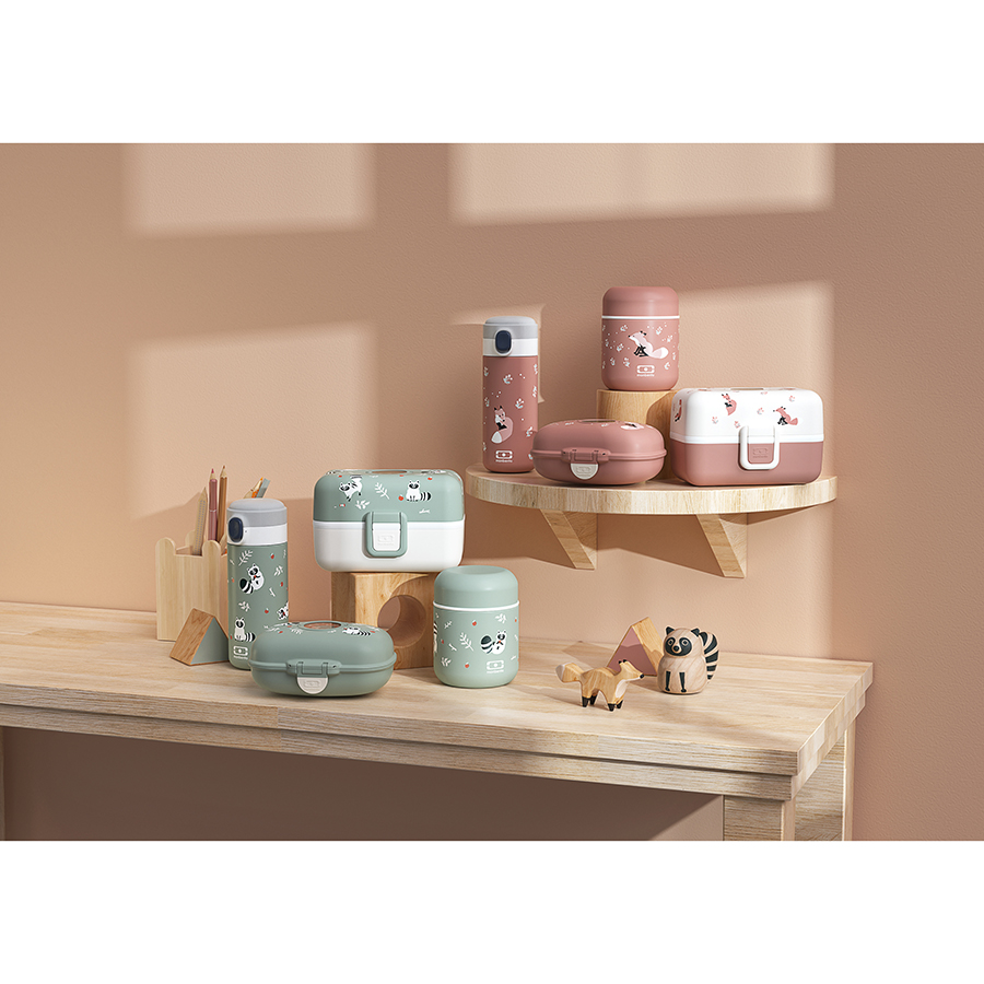 Ланч-бокс изготовлен из качественного пищевого пластика PBT (,полибутилентерефталат),, который полностью безопасен как для человека, так и для окружающей среды. PBT не содержит бисфенола-А и других вредных веществ, а также легко перерабатывается. Надежный замок обеспечивает полную герметичность. Съемные жетоны на крышке ланч-бокса позволяют детям создавать свой собственный дизайн. В комплект входят 4 жетона, которые можно менять.