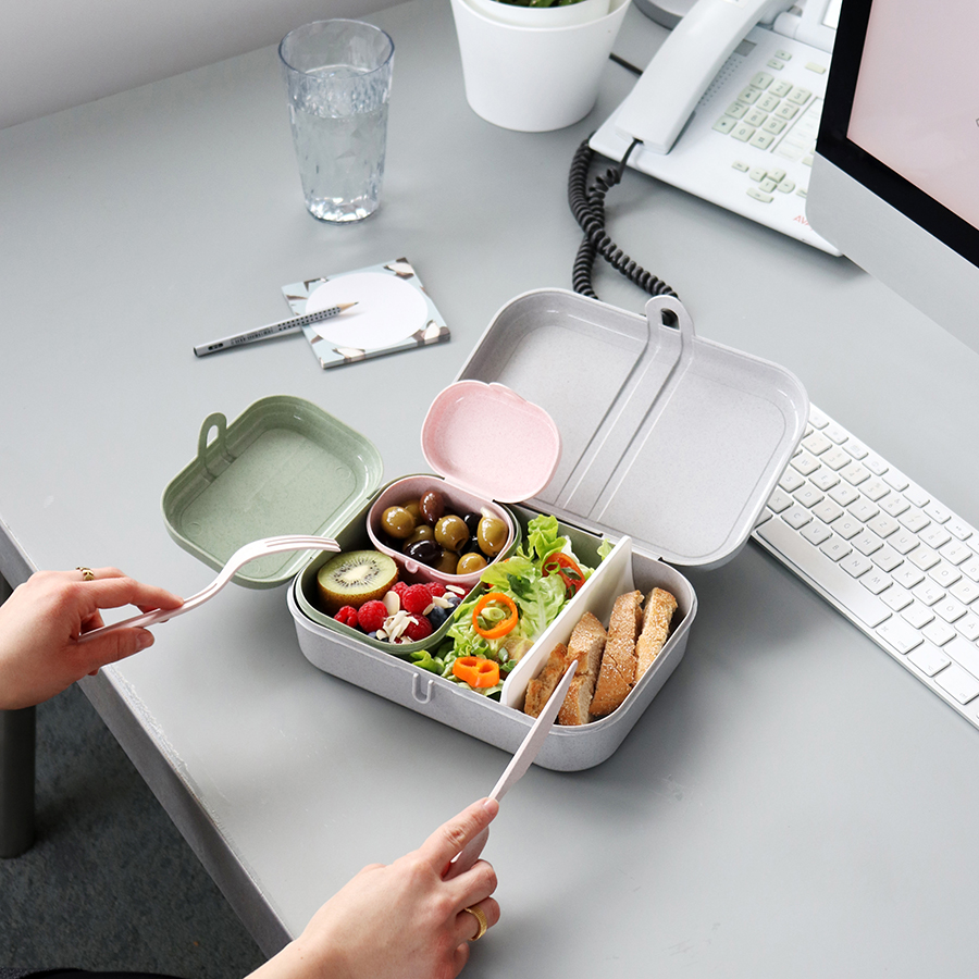 Ланч-бокс Pascal MINI – компактная коробка для школьных обедов или перекусов на работе. За счет обтекаемой формы и плавных линий емкость можно переносить в сумке или рюкзаке без риска повредить тетради, документы или другие важные предметы. Бокс вмещает орехи, печенье, фрукты и другие закуски. Изготовлен из органического материала на основе целлюлозы, не содержит формальдегиды, бисфенола А. Ланч-бокс можно мыть в посудомоечной машине.