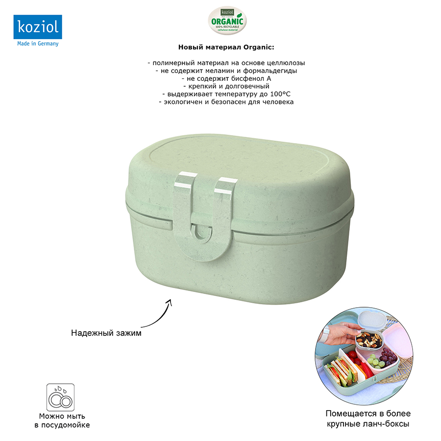 Ланч-бокс Pascal MINI – компактная коробка для школьных обедов или перекусов на работе. За счет обтекаемой формы и плавных линий емкость можно переносить в сумке или рюкзаке без риска повредить тетради, документы или другие важные предметы. Бокс вмещает орехи, печенье, фрукты и другие закуски. Изготовлен из органического материала на основе целлюлозы, не содержит формальдегиды, бисфенола А. Ланч-бокс можно мыть в посудомоечной машине.
