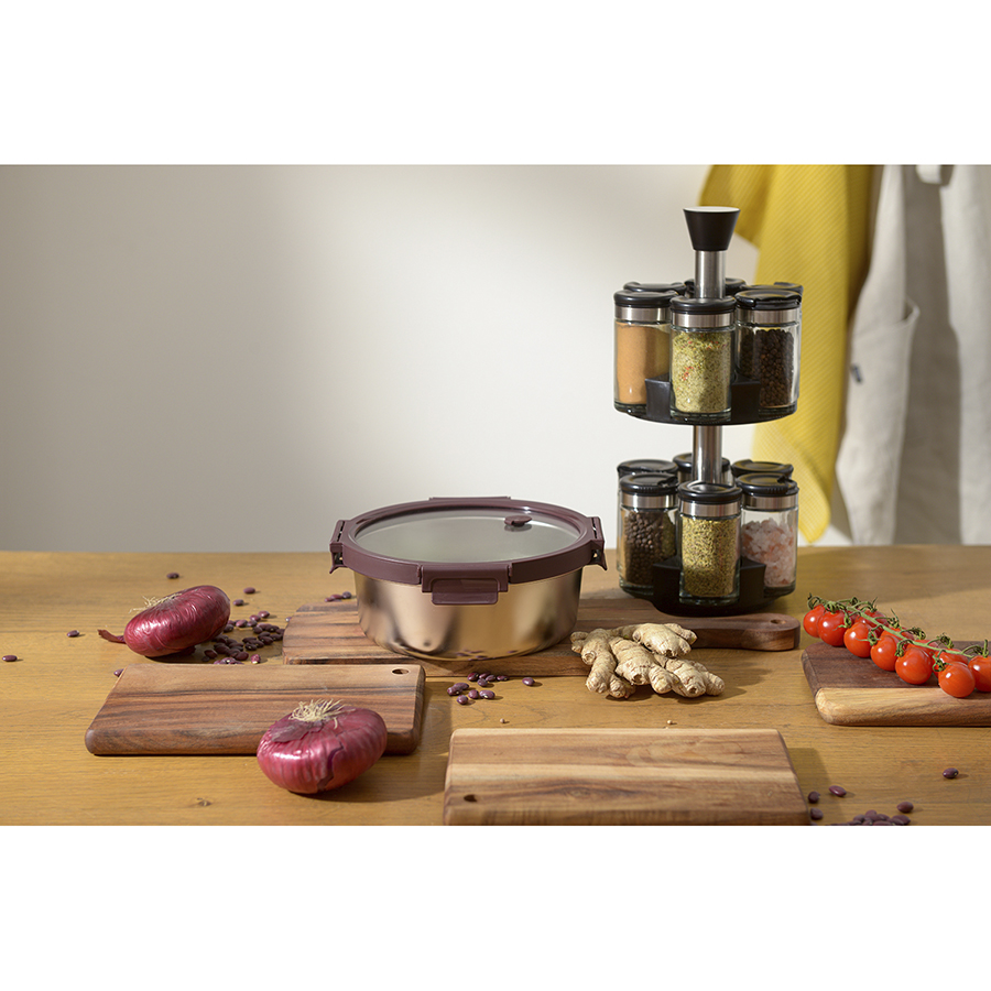 Материал: нержавеющая сталь 18/10, боросиликатное стекло, пластик. Размеры: 20,5х20,5х8,5 см. Объем: 1,5 л. Цвет: сливовый.