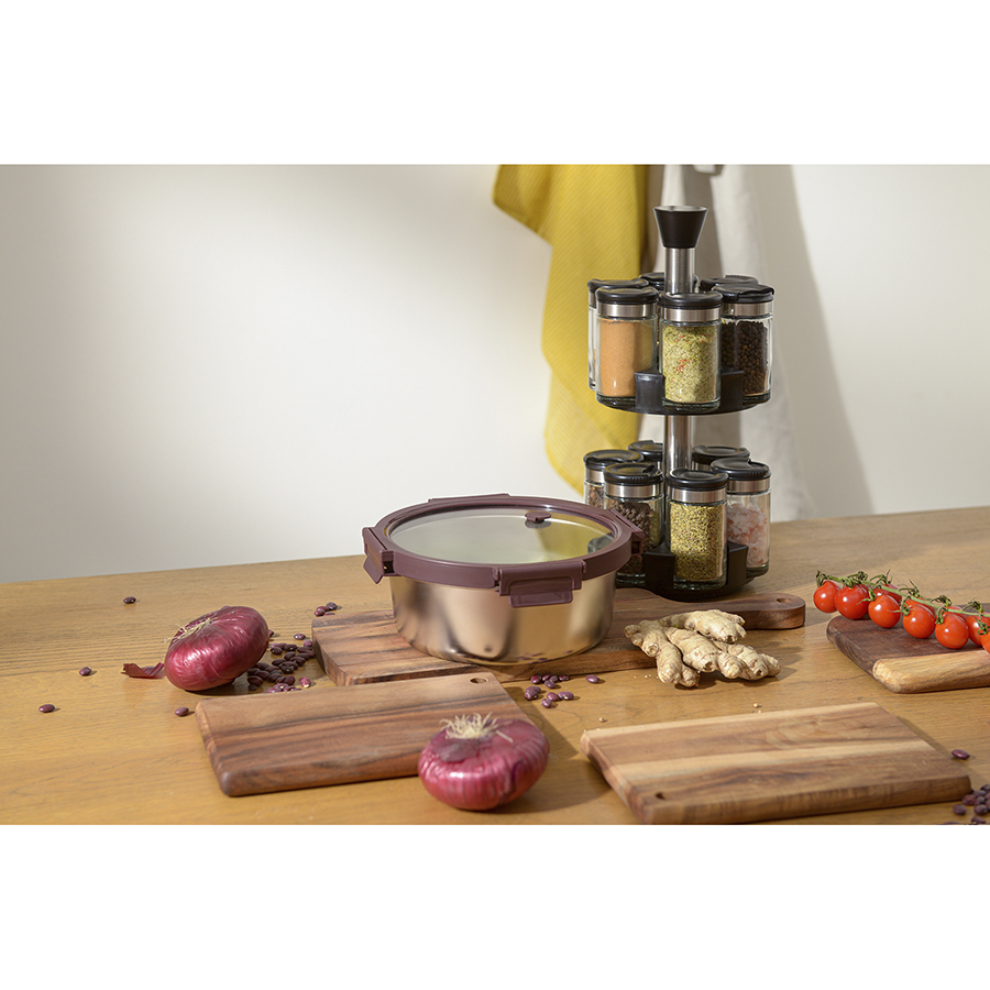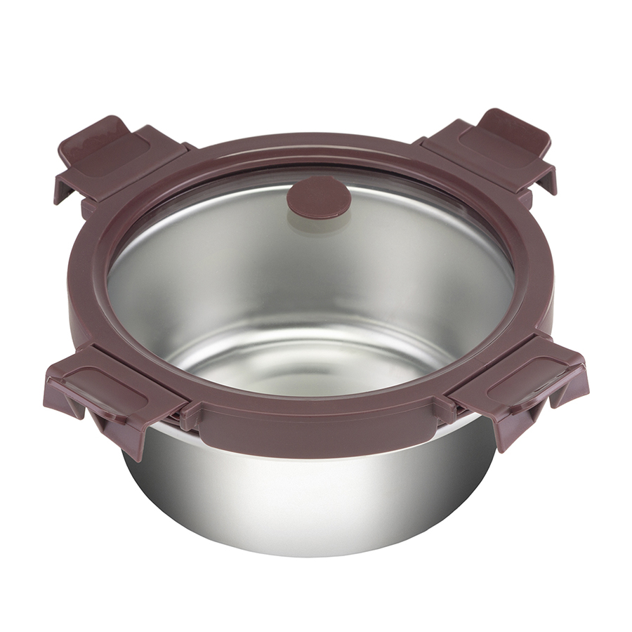 - Крышка из прочного боросиликатного стекла легко выдерживает перепады температуры, имеет специальные фиксаторы, которые помогают избежать протечек.