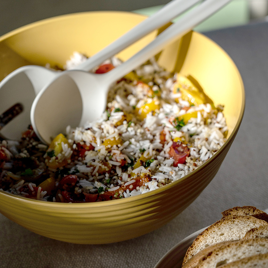 Прочная миска из переработанного пластика подойдет для подачи салатов, фрутов и т.д. Герметичная крышка придется кстати при траспортировке, защитит пищу от пыли и насекомых во время трапезы на открытом воздухе, предотвратит заветривание и распространение запахов в холодильнике.