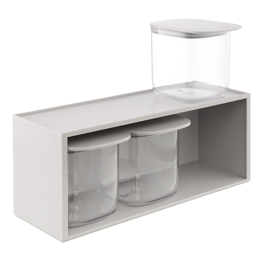 Набор для хранения от Qualy поможет быстро навести порядок на любой кухне. Комплект включает три контейнера из высокопрочного тритана и специальный стеллаж из переработанного АБС-пластика для их компактного размещения. Специальные плоские крышки с удлиненным краем позволяют легко достать емкость с нужными продуктами. Благодаря практичным материалам изделия легко очищаются от загрязнений, долго служат. , , , , , , , , , , , , , , , , , , , , , , , , , , , , , , , , , , , , , , , , , , , , , , , , , , , , , , , ,
