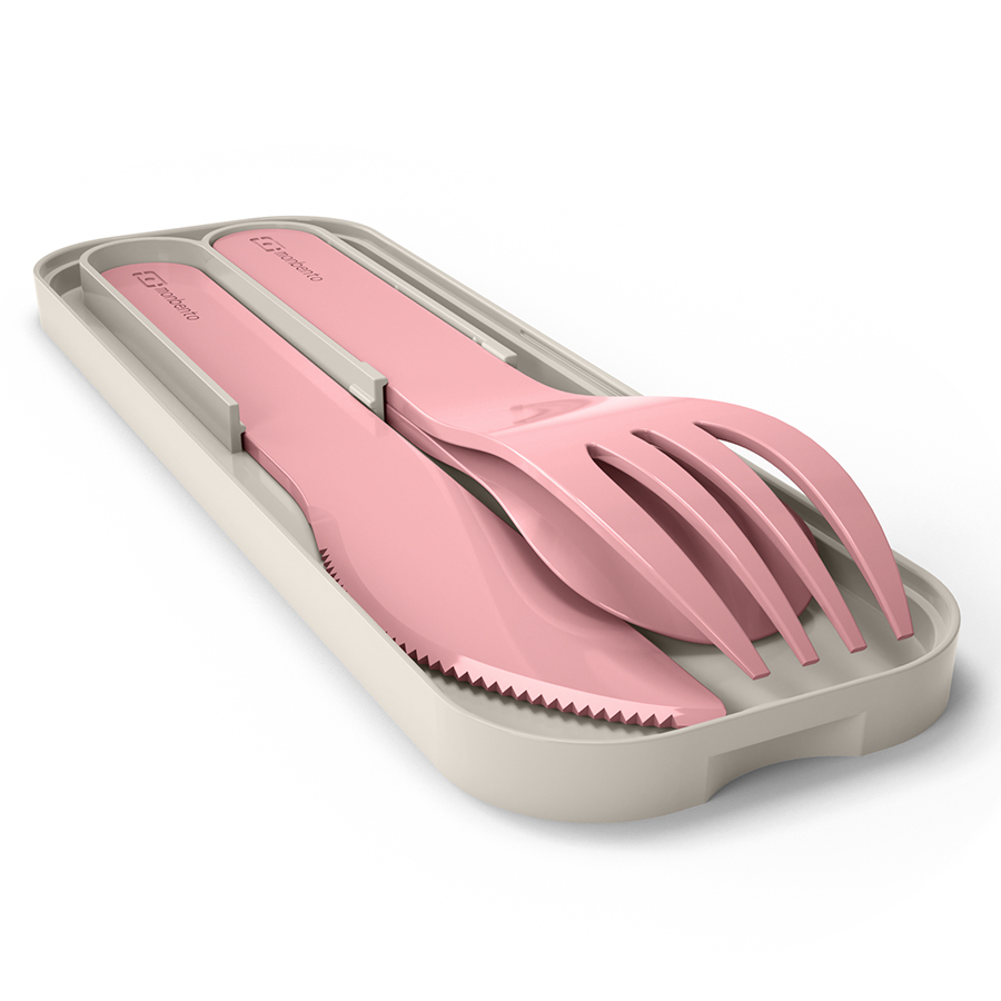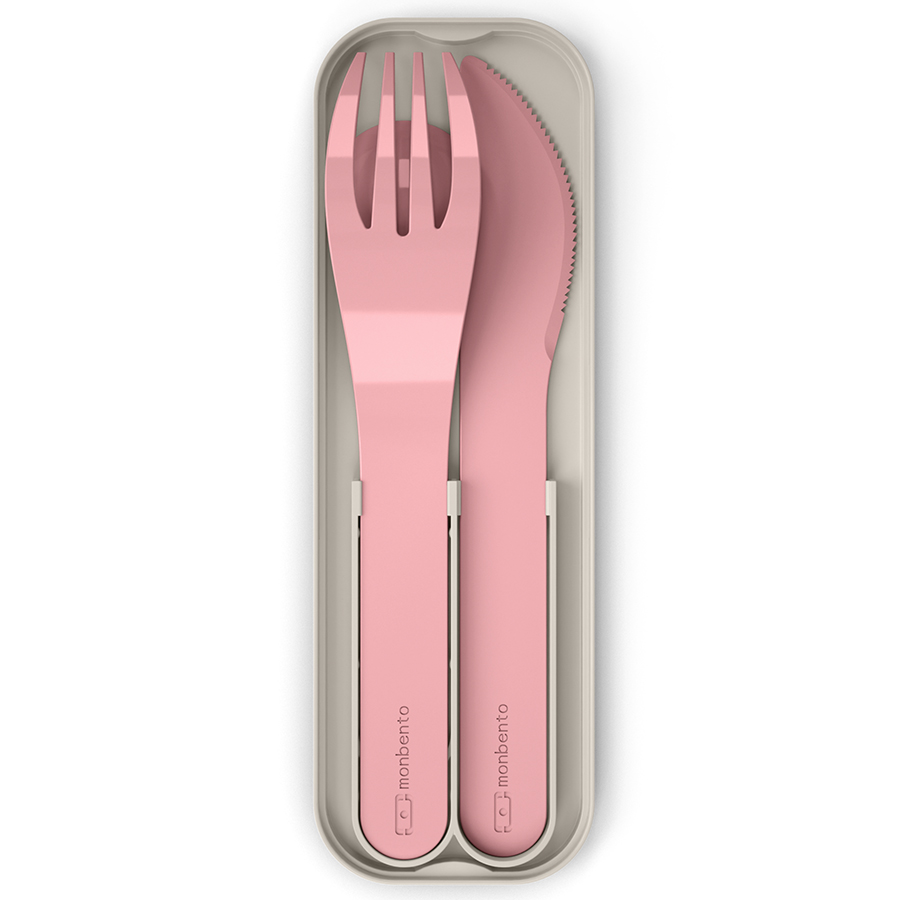 Компактные приборы хранятся в специальном футляре. Набор удобно хранить под крышкой ланч-бокса Monbento. Приборы изготовлены из PLA - 100%, биоразлагаемого пластика, произведенного из растений. При этом они очень прочные. Приборы изготовлены без примеси вредного для здоровья бисфенола-а.