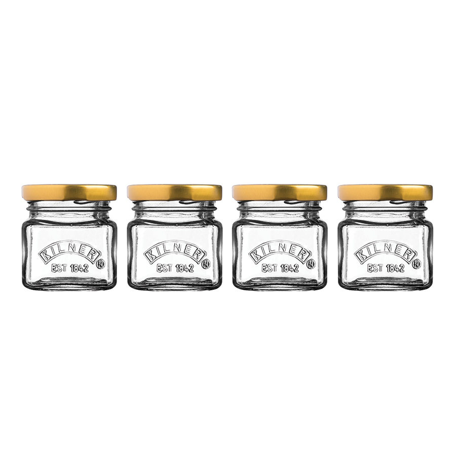 Набор из 4 стильных баночек, которые подходят для хранения джемов, карамели, мёда, специй и разных приятных мелочей. Удобная закручивающаяся крышка плотно прилегает к краям банки и не пропускает воздух. Это позволяет сохранять продукты свежими дольше, чем в пластиковых контейнерах. Банки украшены фирменным логотипом бренда Kilner. Набор упакован в красивую коробку и станет прекрасным подарком любой хозяйке.
