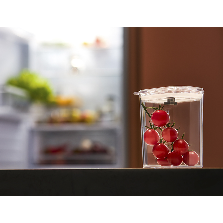 - Контейнеры выполнены из SAN-пластика, который обладает высокой прочностью, не впитывает запахи и не вступает в химическую реакцию с продуктами.