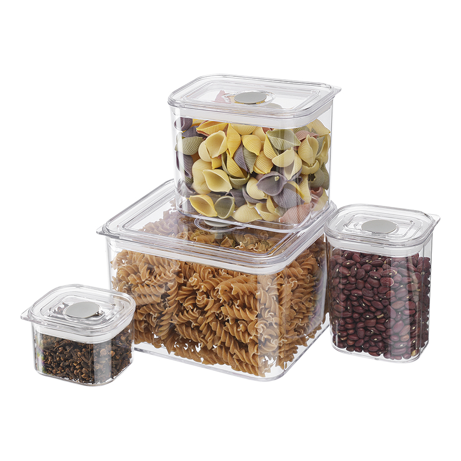 Материалы: пластик SAN, силикон. Размеры: 9х7х6 см, 9х7х11,5 см, 14,5х9х11,5 см, 18,5х14,5х11,5 см. Объемы: 190 мл, 440 мл, 1л, 2,3 л. Количество в наборе: 4 шт.