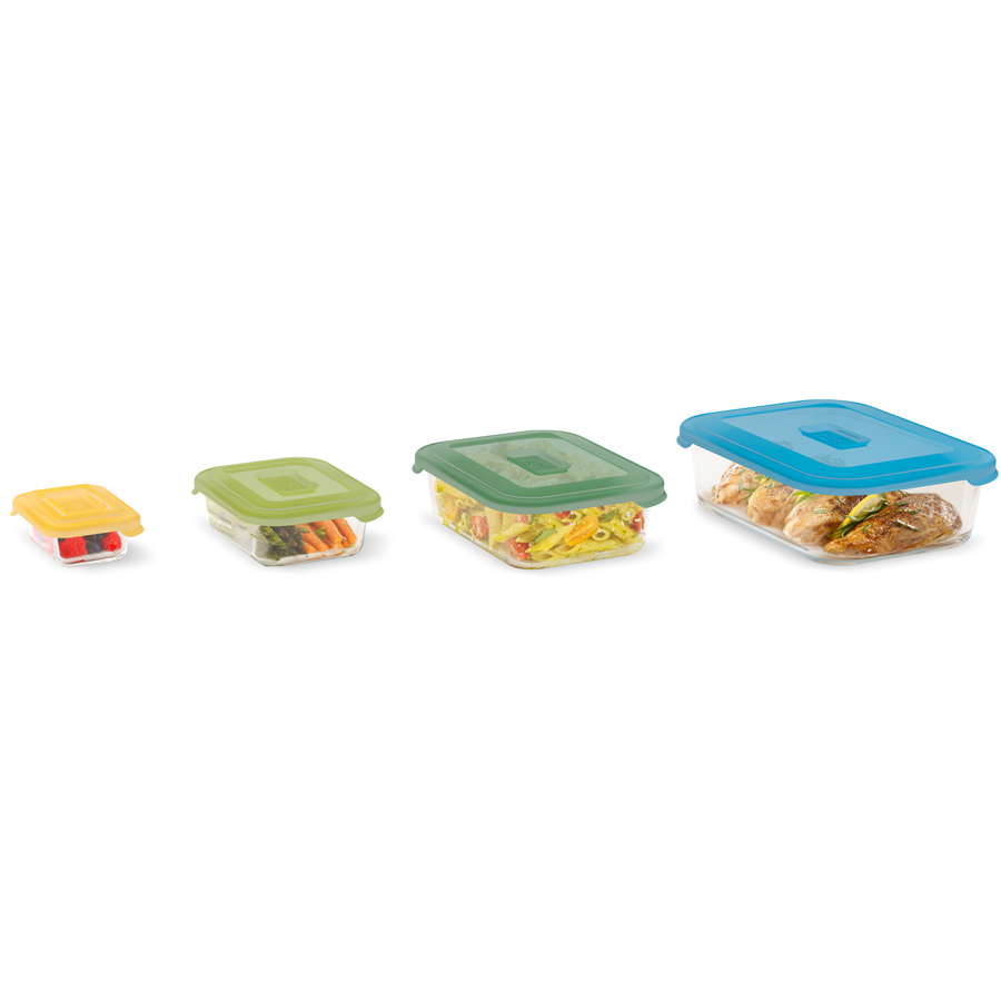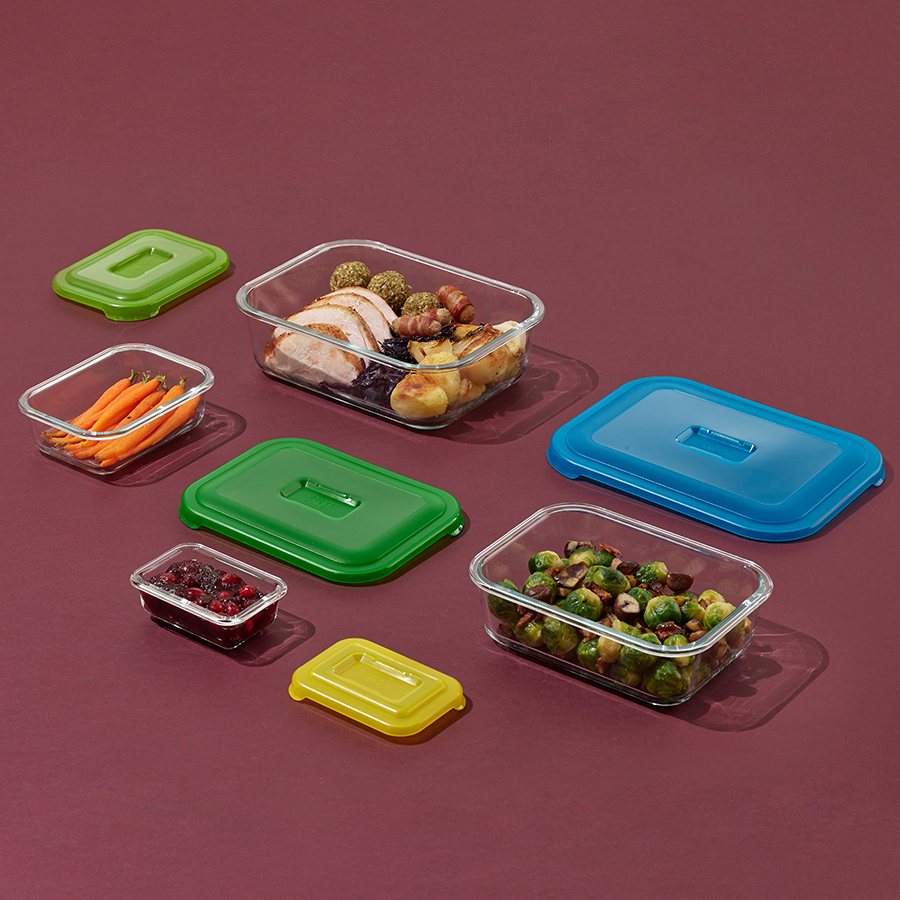 Универсальный набор стеклянных контейнеров подходит и для приготовления еды в духовке, и для её хранения.