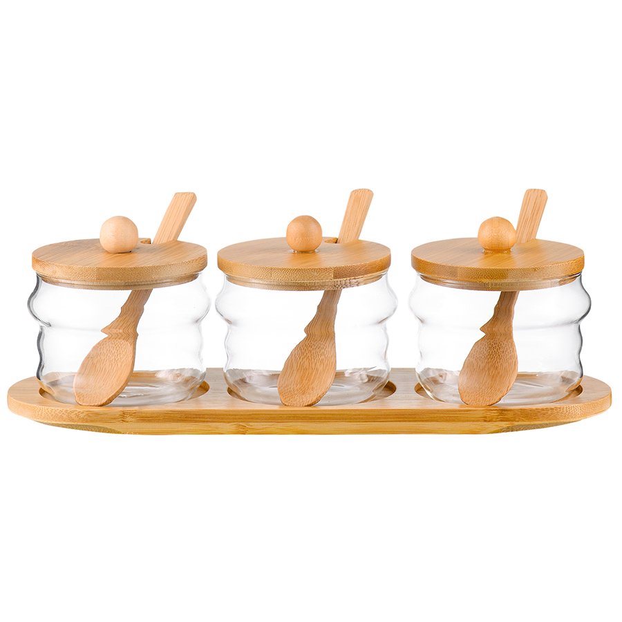 Материал: боросиликатное стекло, дерево. Объем: 300 мл. Количество предметов в наборе: 3 шт.