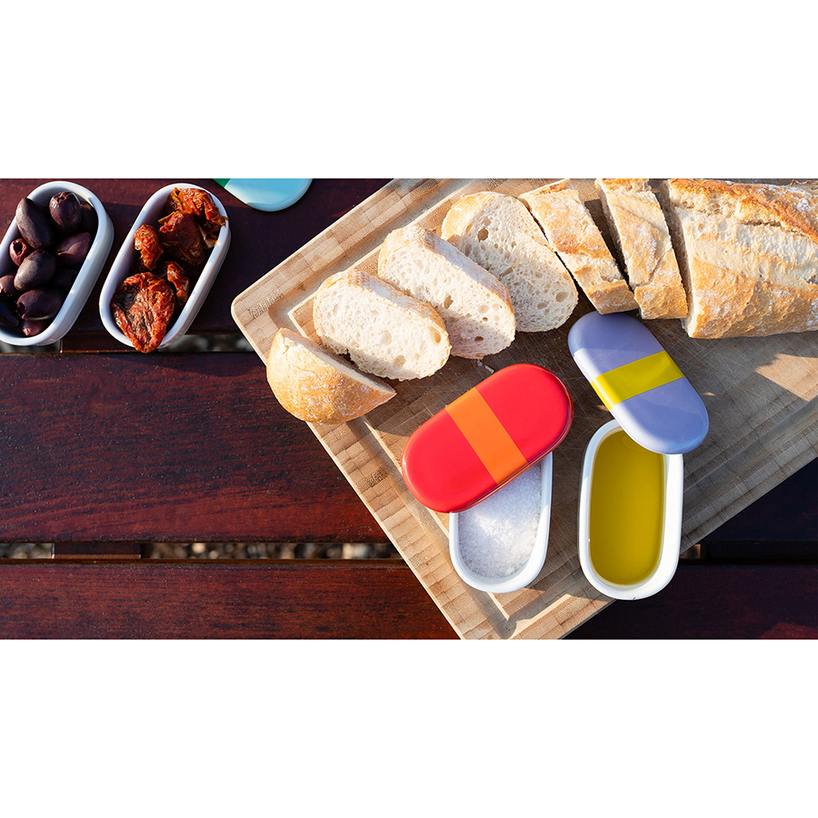 Контейнеры подходят для соли, масла, соусов, специй и многого другого. Крышки разных цветов не дадут перепутать емкости. Они выполнены из высококачественного фарфора. Размер одного контейнера (,ВхШхГ),: 3,7х4,9х9,2 см