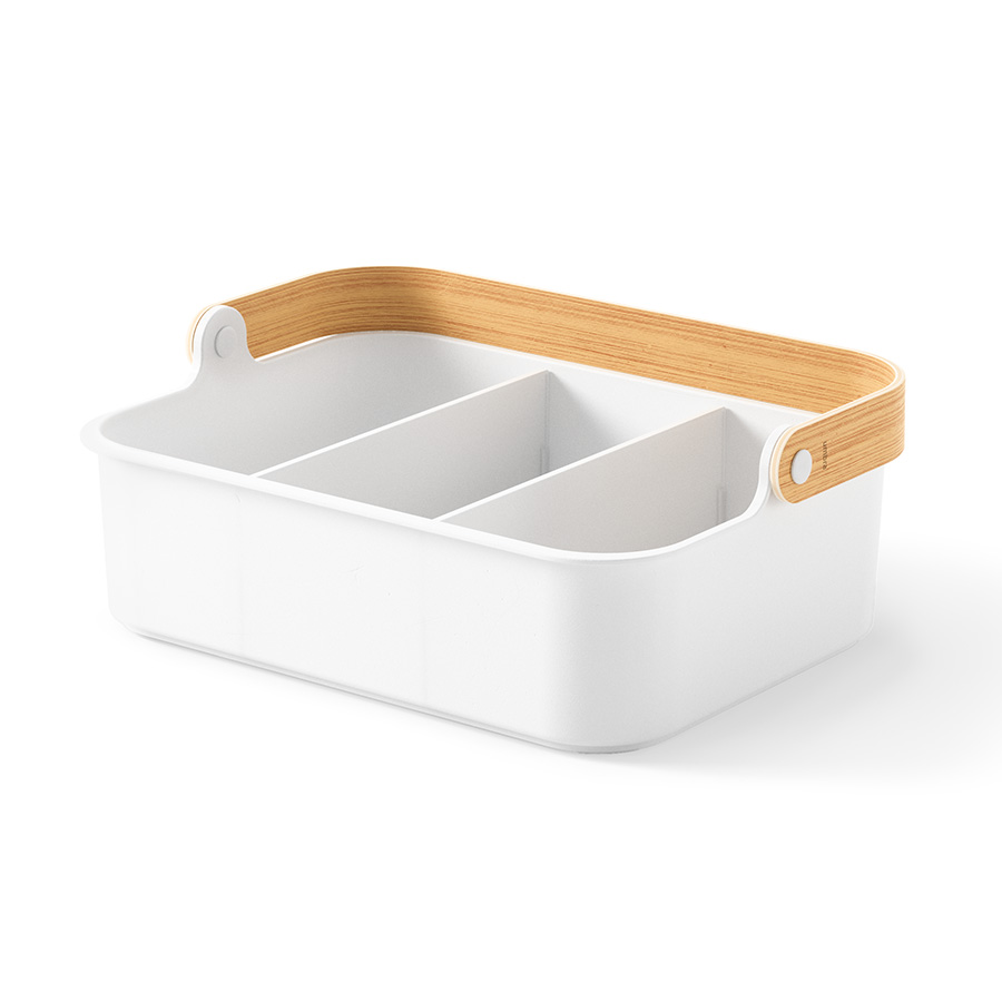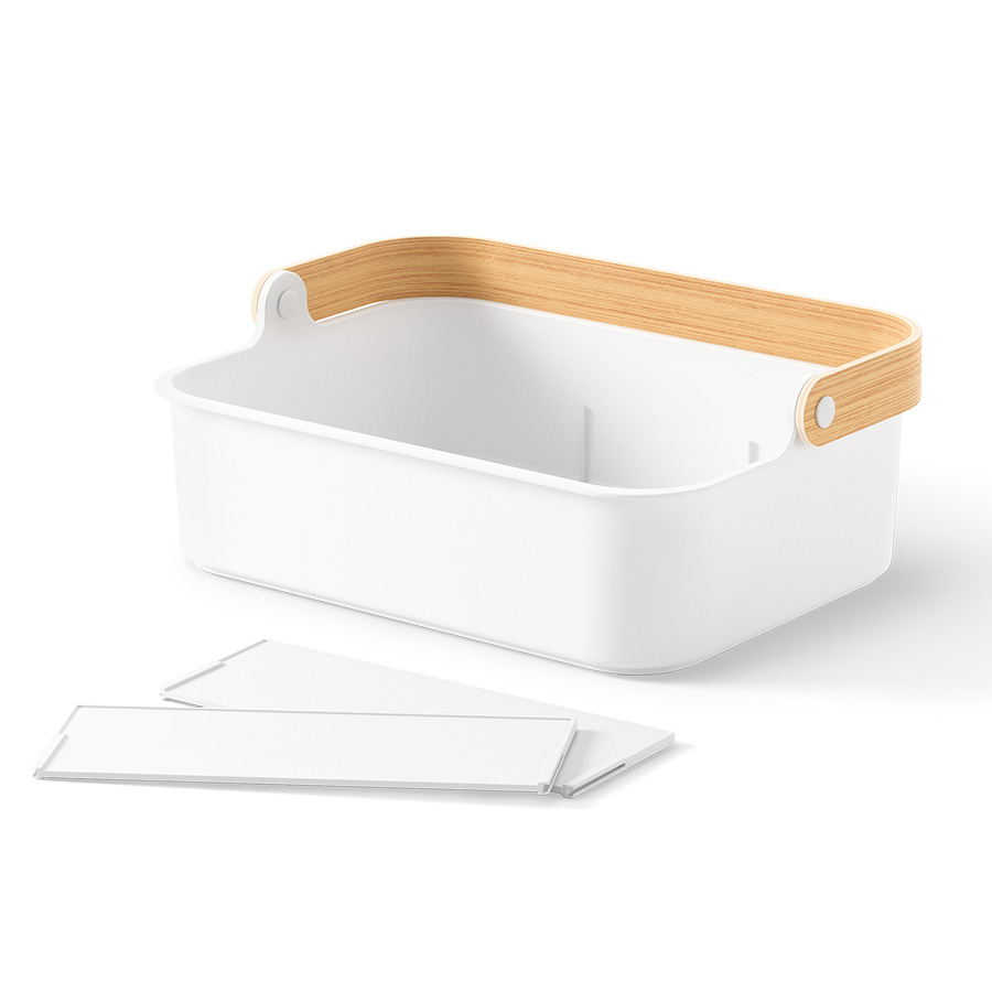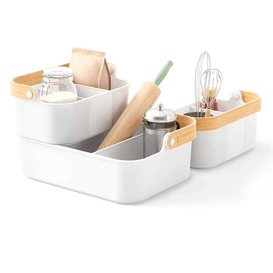 Органайзер Bellwood поможет организовать компактное хранение продуктов и вещей в любой из комнат. Специальные разделители позволяют удобно размещать и сортировать предметы. Органайзер на 80%, выполнен из переработанного АБС-пластика, известного своей прочностью, устойчивостью к износу и долговечностью. Он оснащен ручкой из древесины, которая обеспечивает простую переноску, а также делает дизайн привлекательным и интересным.