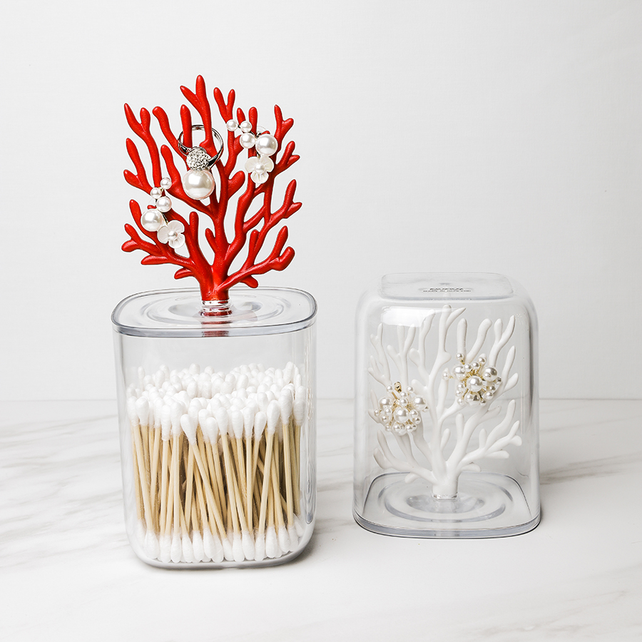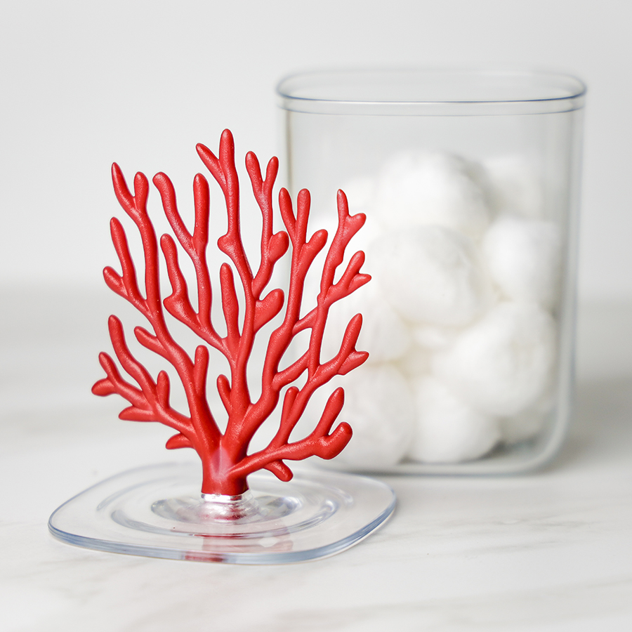 Стильный, практичный органайзер подходит для хранения всевозможных мелких аксессуаров, будь то ватные палочки или бижутерия. Коралл на крышке – это напоминание о необходимости заботиться об окружающей среде, сократить выбросы отходов в мировой океан, замедлить климатические изменения.