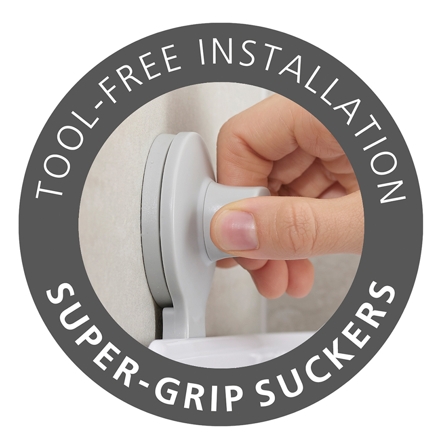 Мыть и протирать вручную. Не используйте агрессивные чистящие средства. Внимание: Только для использования в ванной комнате. Не подходит для монтажа на мозаичную, текстурированную или скошенную плитку. Для максимально прочного крепления снимайте, протирайте и повторно крепите присоски каждые 3 месяца.