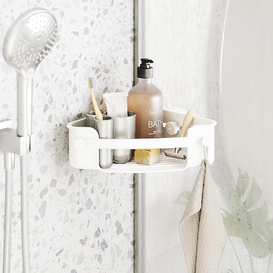Настенный органайзер Flex Adhesive поможет удобно разместить в душевой зоне все необходимые средства для ежедневного ухода, включая гель для душа, шампунь, кондиционер, мочалки и бритвы.