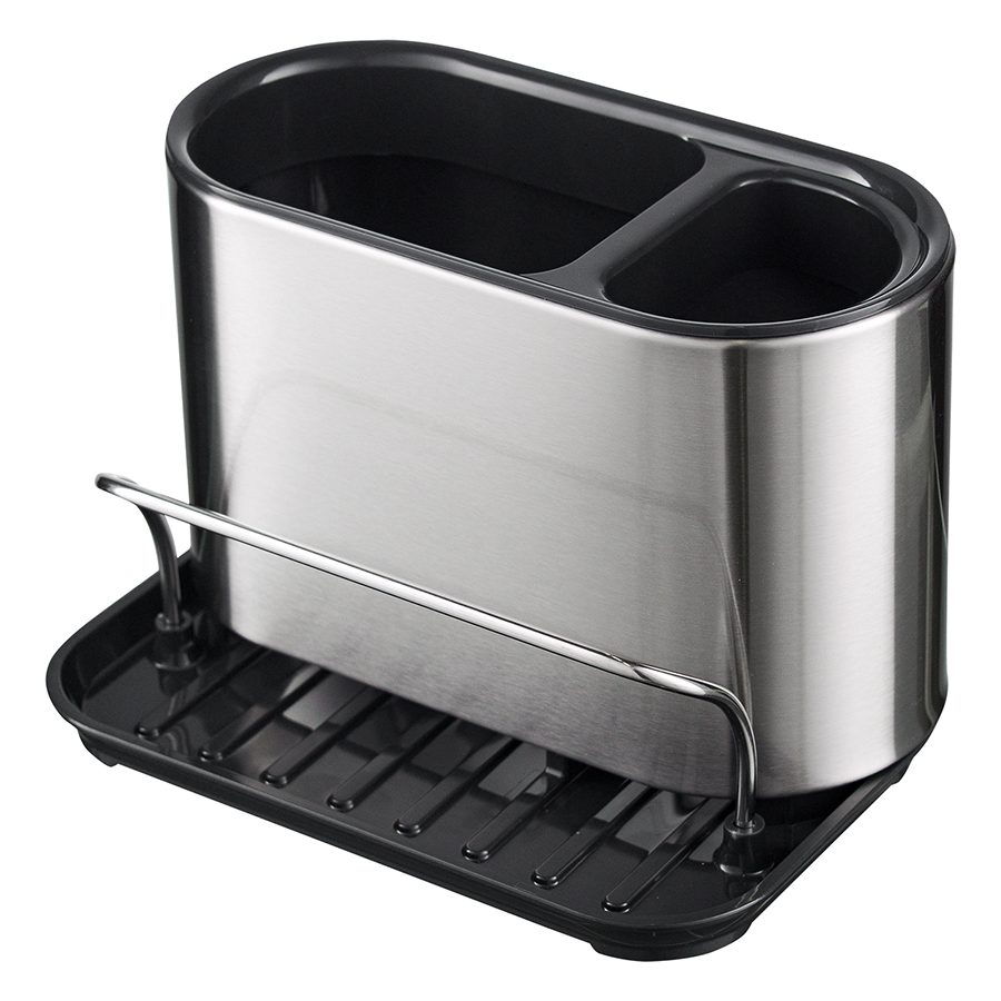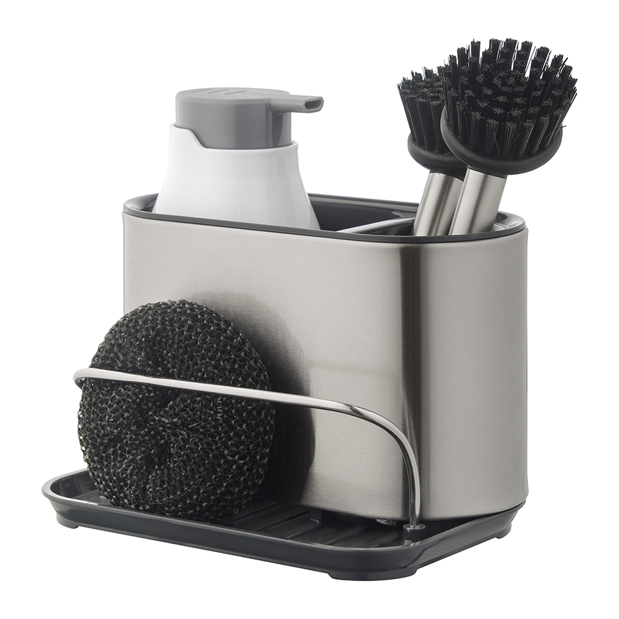 Органайзер Atle позволяет компактно разместить средство для мытья посуды, губку, щетку и другие предметы для уборки кухни непосредственно на мойке или на столешнице. Изделие выполнено из прочного и устойчивого к износу АБС-пластика и нержавеющей стали. Стильный контейнер в универсальном цветовом решении органично вписывается в различные варианты оформления интерьера.