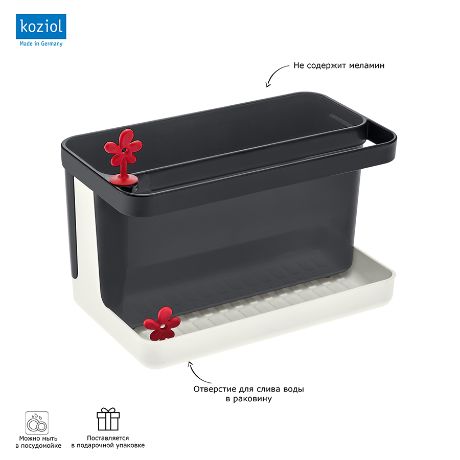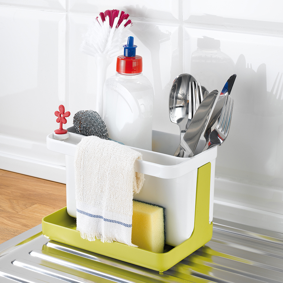 Вместительный органайзер PARK IT поможет организовать пространство на кухне: в нем найдется место для губки, щетки, маленького полотенца, моющего средства и столовых приборов. Корпус изделия разбирается и легко моется. В основании есть отверстие для слива, которое закрывается декоративной пробкой.