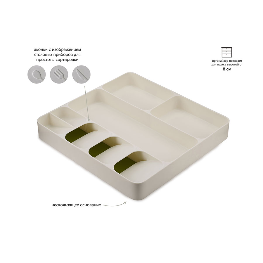 Новый органайзер DrawerStore позволяет компактно хранить столовые приборы и кухонные инструменты в одном ящике.