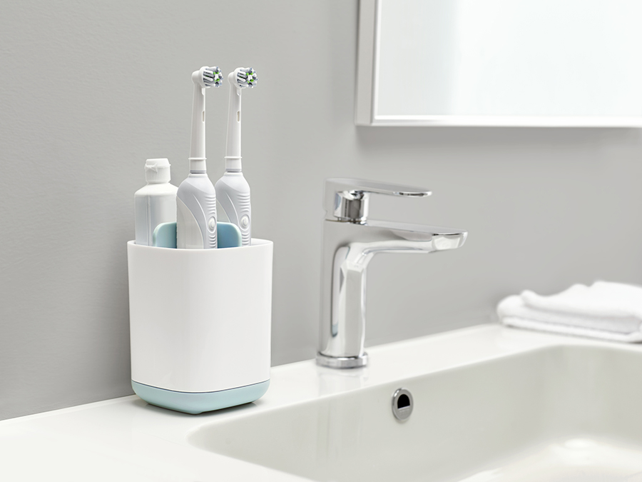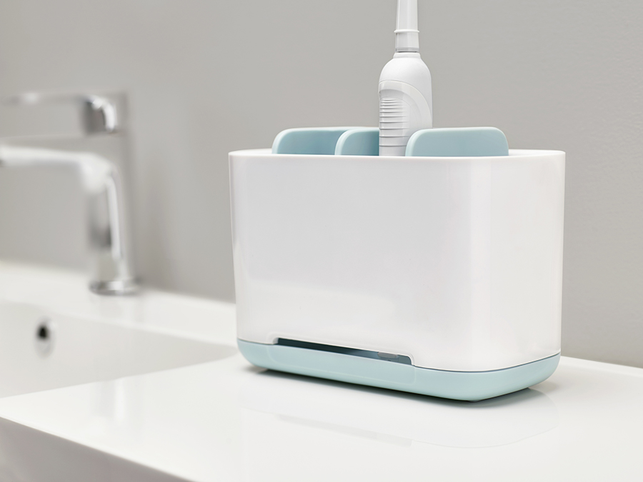 Большой органайзер идеально подходит для хранения обычных и электрических зубных щеток, а также тюбиков пасты.