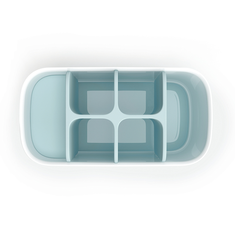 В органайзере есть вентиляционные отверстия, позволяющие предметам быстро сохнуть. В контейнере не скапливается влага, он остается сухим и сохраняет все предметы в прекрасном состоянии. Аксессуар очень легко разбирается и моется, поэтому уход за ним не займет много времени. На дне органайзера есть специальные силиконовые ножки. Этот материал не скользит на гладких поверхностях, что придает органайзеру дополнительную устойчивость.