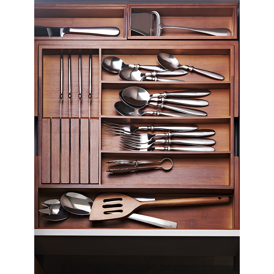 Органайзер-конструктор Bambox от дизайнерского бренда Liberty Jones поможет организовать удобное хранение столовых приборов и за счет натурального дизайна органично впишется в интерьер любой современной кухни.