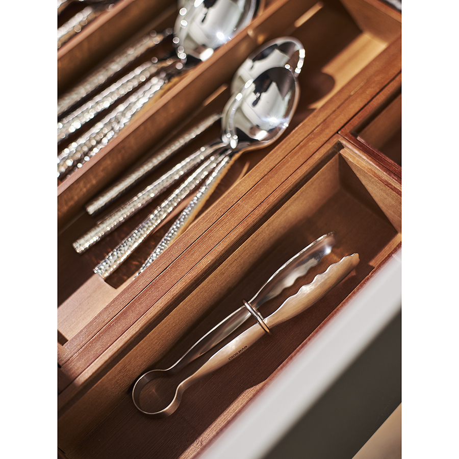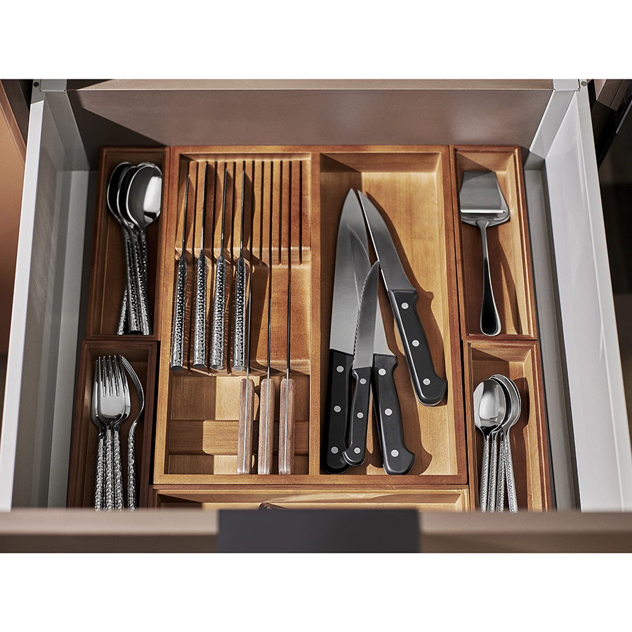 - Состоит из шести секций, что позволяет раздельно хранить все виды столовых приборов: ложки, вилки, ножи и прочие.