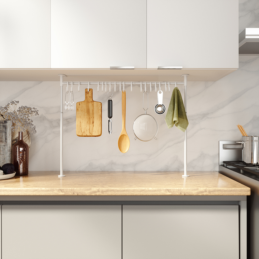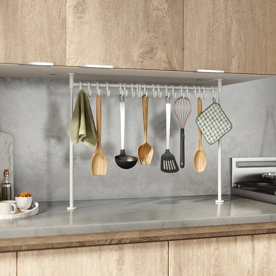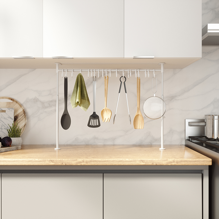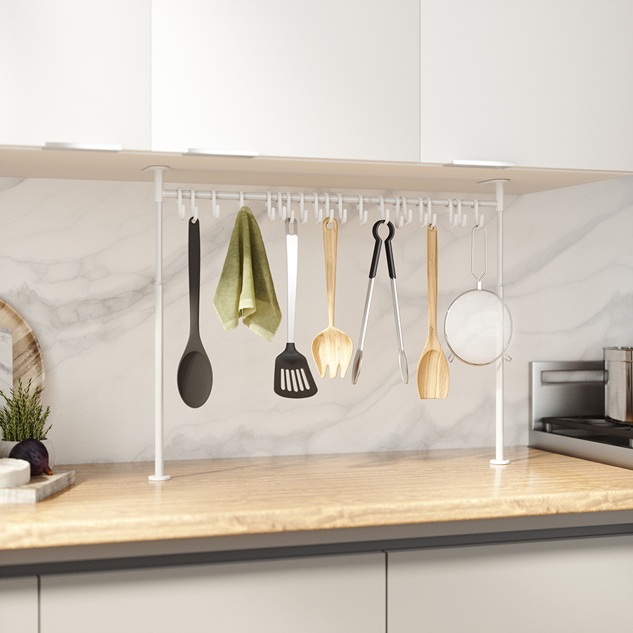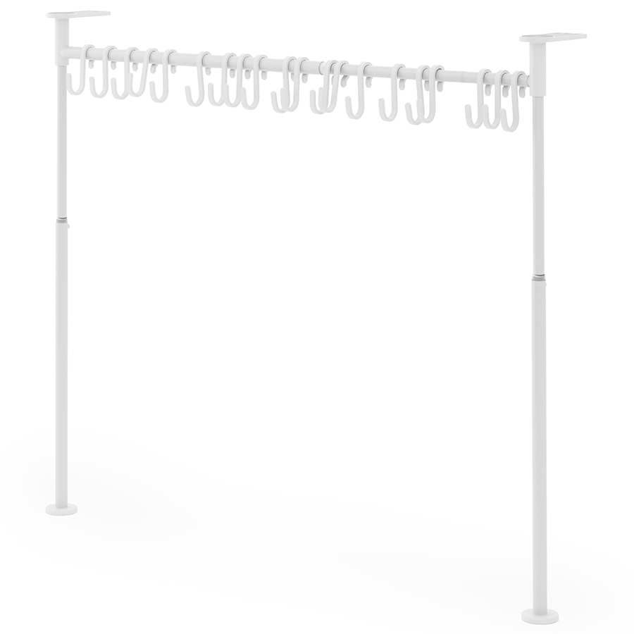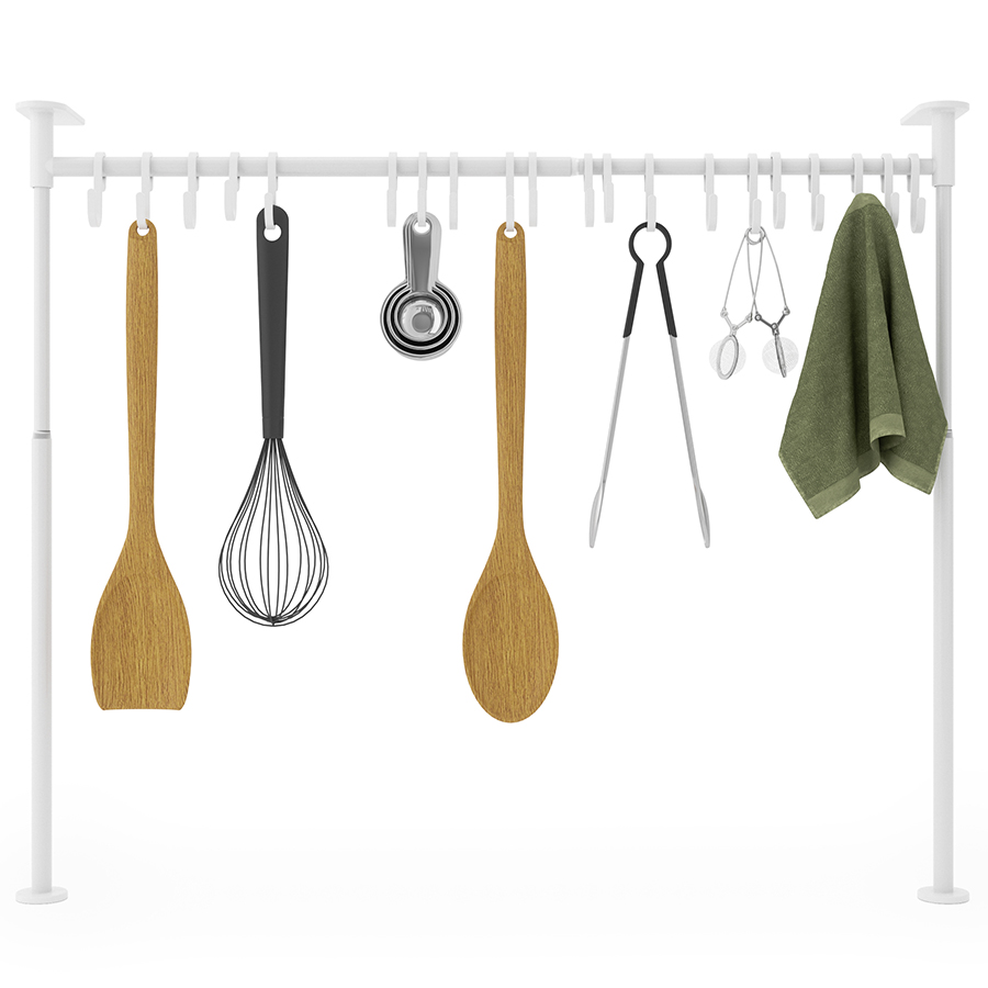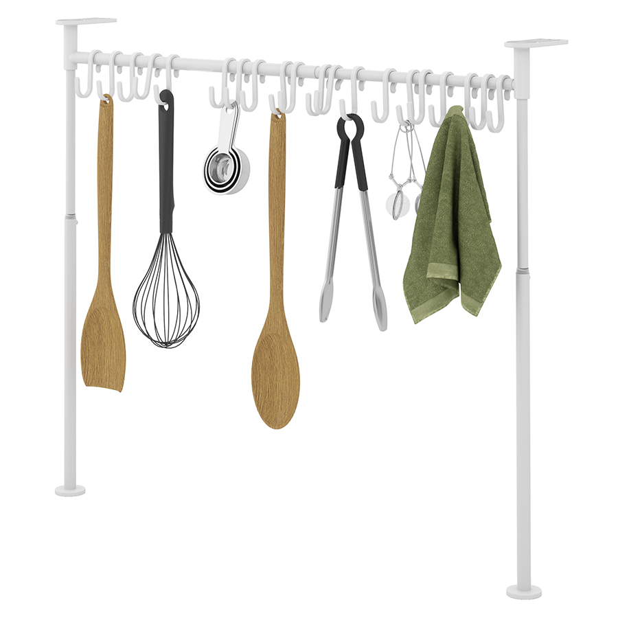 Многофункциональный органайзер оснащен двадцатью подвесными крючками. Конструкция легко раздвигается без инструментов. Органайзер раздвигается от 38 до 50 см в высоту и от 39 до 61 см в ширину. Мягкие накладки защищают мебель от повреждений.