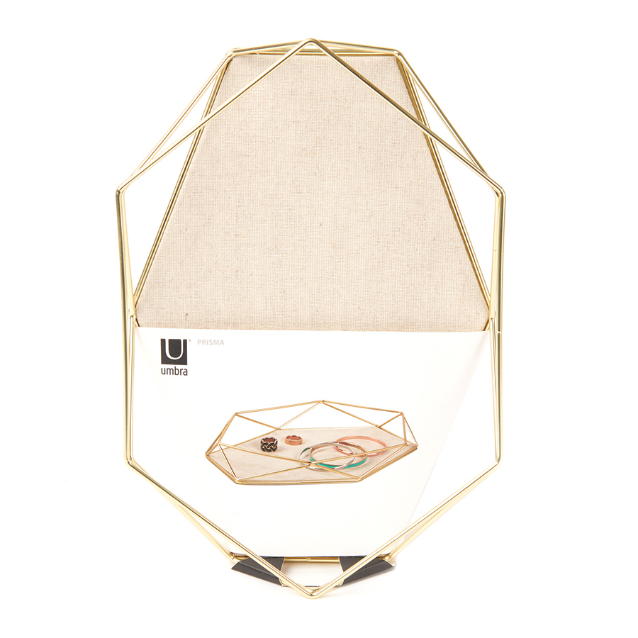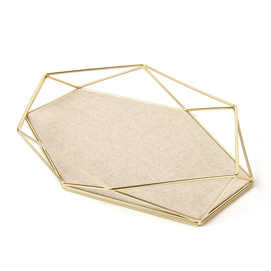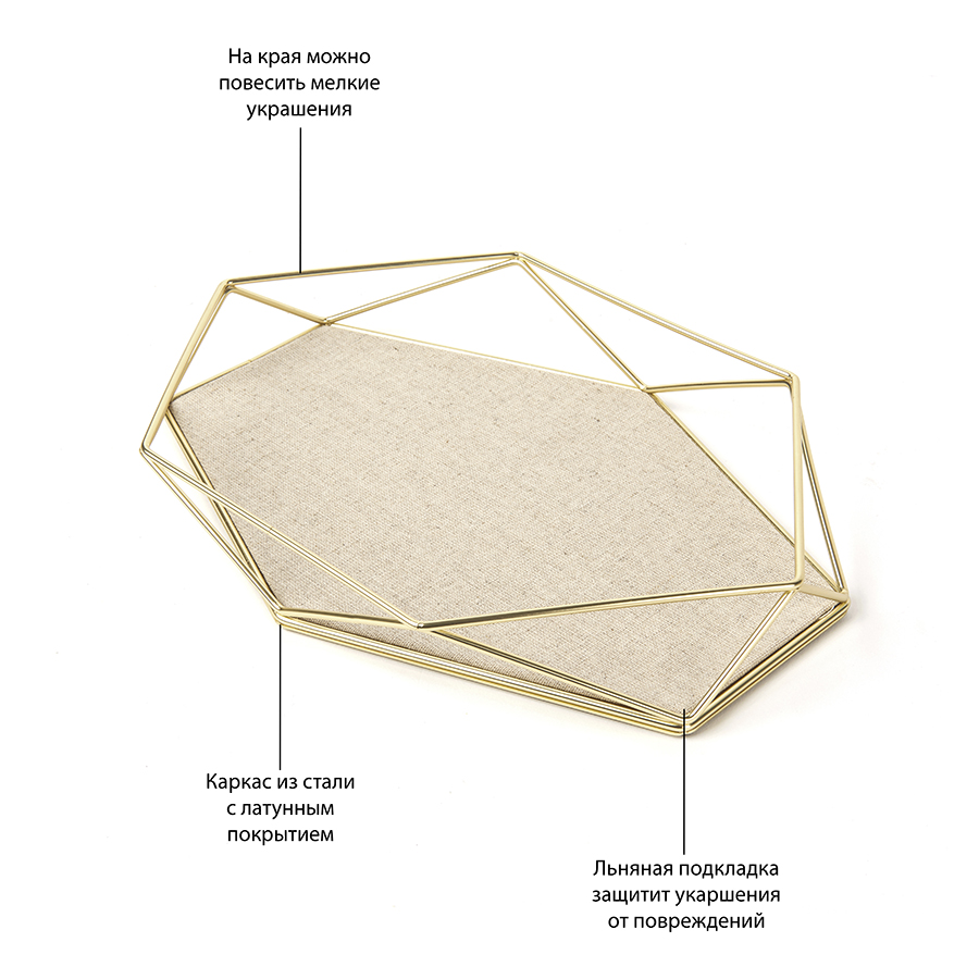 На дне подноса разместятся кольца, браслеты и часы, а «грани» послужат для подвешивания сережек. Льняная поверхность песочного цвета предотвращают повреждение драгоценных камней.