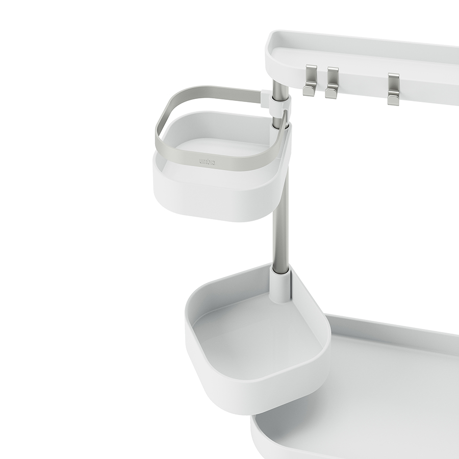 Holster – универсальный органайзер с удобной многоуровневой конструкцией для хранения различных бытовых предметов: кухонные аксессуары, бытовая химия, канцелярские принадлежности и многое другое. Для максимального удобства средние лотки можно регулировать по высоте и расположению вдоль стойки. Сочетание прочного и устойчивого к износу АБС-пластика и нержавеющей стали обеспечивает изделию долгий срок службы и привлекательный внешний вид на протяжении всего периода эксплуатации. Компактность и современный дизайн позволяют легко интегрировать модель в любое пространство. Органайзер поставляется в разобранном виде, быстро и легко собирается.