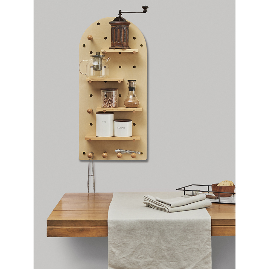 Пегборд Shely – многофункциональный предмет интерьера, который позволит удобно разместить различные аксессуары: наушники, декор, книги, игрушки, рамки с фотографиями, часы, цветочные горшки, сумки и многое другое. Конструкция предусматривает наличие горизонтальных полок и специальных держателей. Благодаря минималистичному дизайну и нейтральному цветовому решению модель прекрасно вписывается в любое оформление комнаты. Настенный монтаж обеспечивает компактное размещение. Практичные материалы гарантируют изделию износостойкость и долгий срок службы.