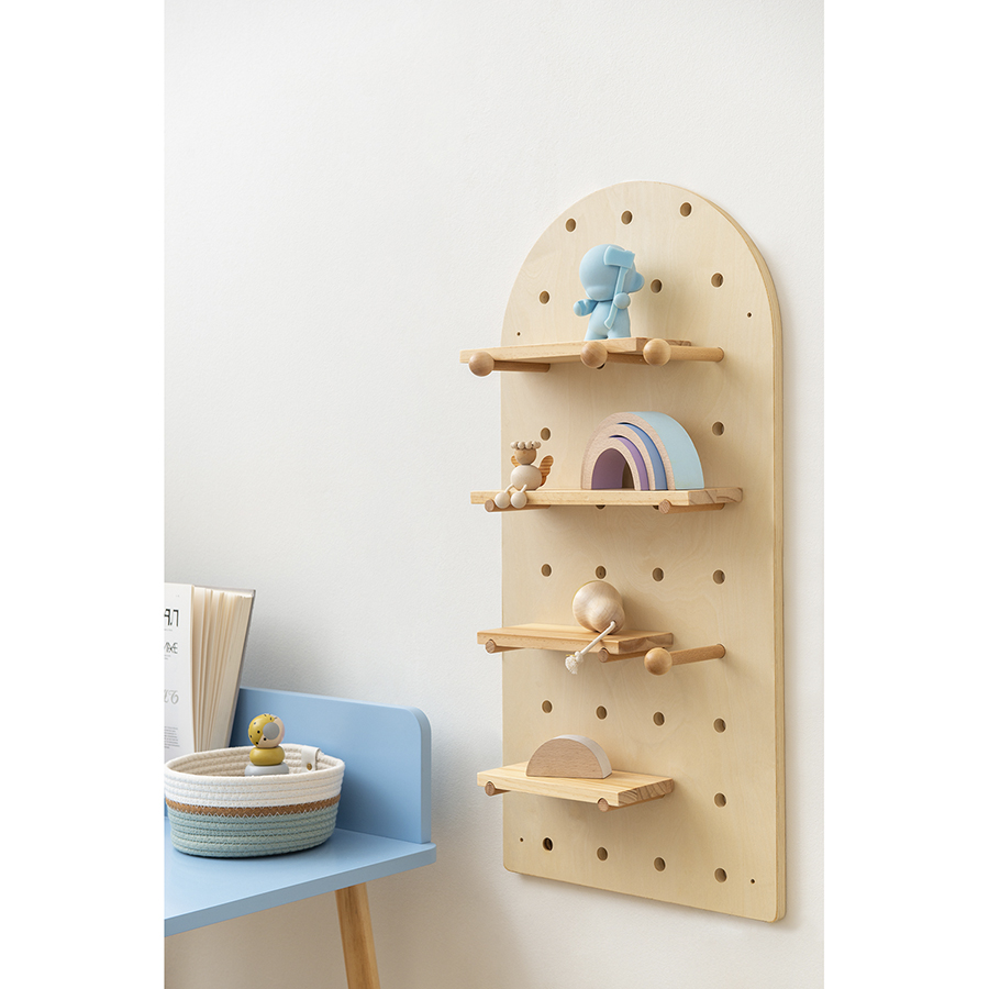 Пегборд Shely – многофункциональный предмет интерьера, который позволит удобно разместить различные аксессуары: наушники, декор, книги, игрушки, рамки с фотографиями, часы, цветочные горшки, сумки и многое другое. Конструкция предусматривает наличие горизонтальных полок и специальных держателей. Благодаря минималистичному дизайну и нейтральному цветовому решению модель прекрасно вписывается в любое оформление комнаты. Настенный монтаж обеспечивает компактное размещение. Практичные материалы гарантируют изделию износостойкость и долгий срок службы.