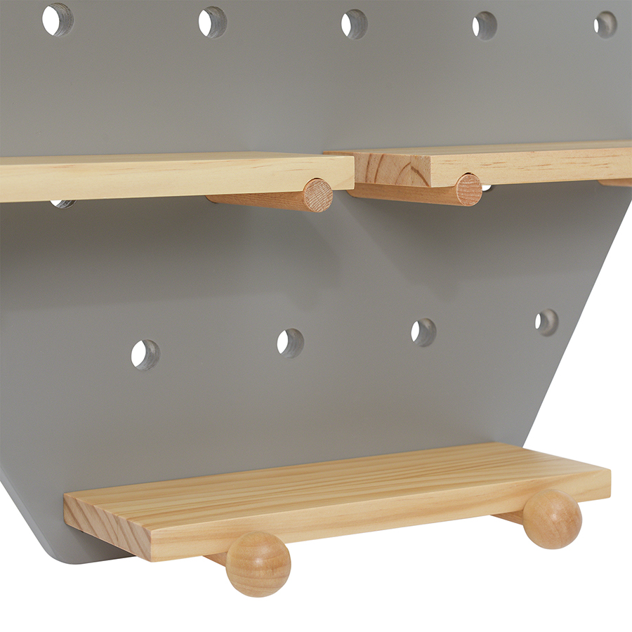 Пегборд Shely – многофункциональный предмет интерьера, который позволит удобно разместить различные аксессуары: наушники, декор, книги, игрушки, рамки с фотографиями, часы, цветочные горшки, сумки и многое другое. Конструкция предусматривает наличие горизонтальных полок и специальных держателей. Благодаря минималистичному дизайну и нейтральному цветовому решению модель прекрасно вписывается в любое оформление комнаты. Настенный монтаж обеспечивает компактное размещение. Практичные материалы гарантируют изделию износостойкость и долгий срок службы.