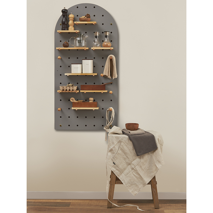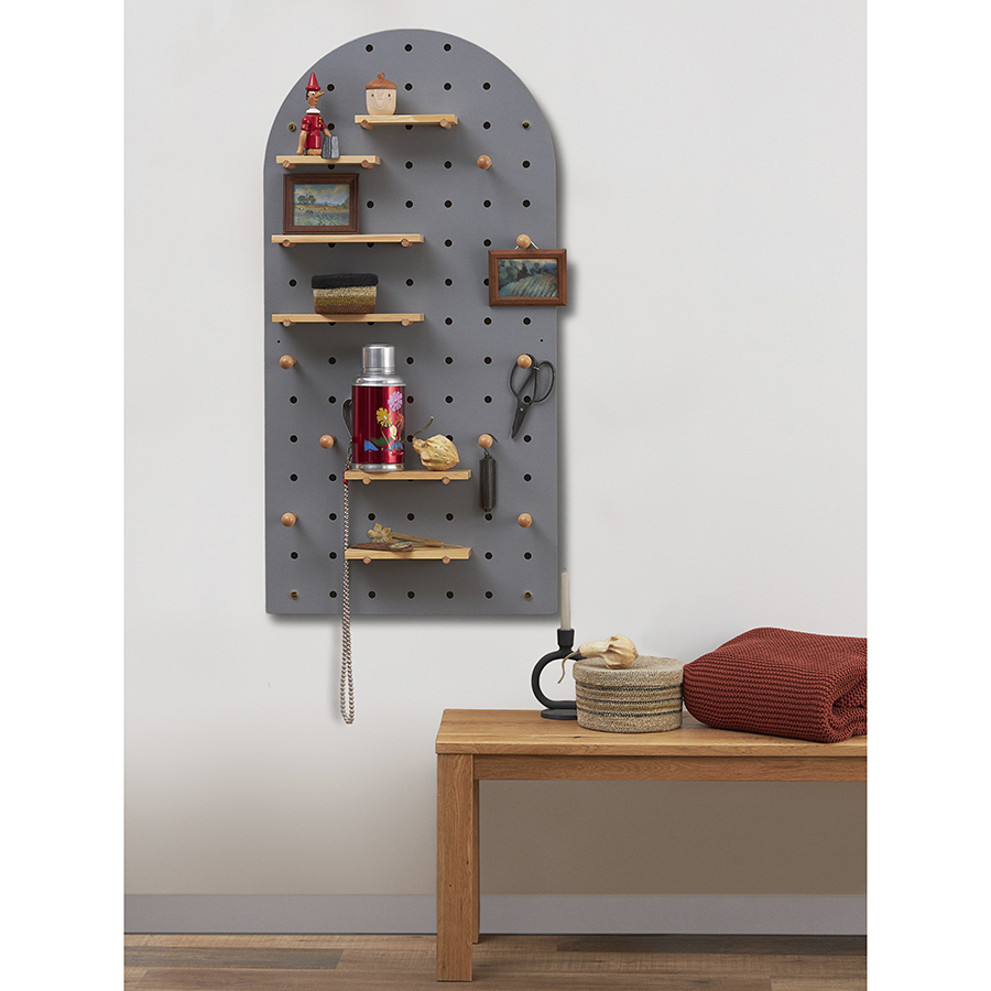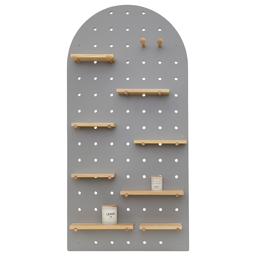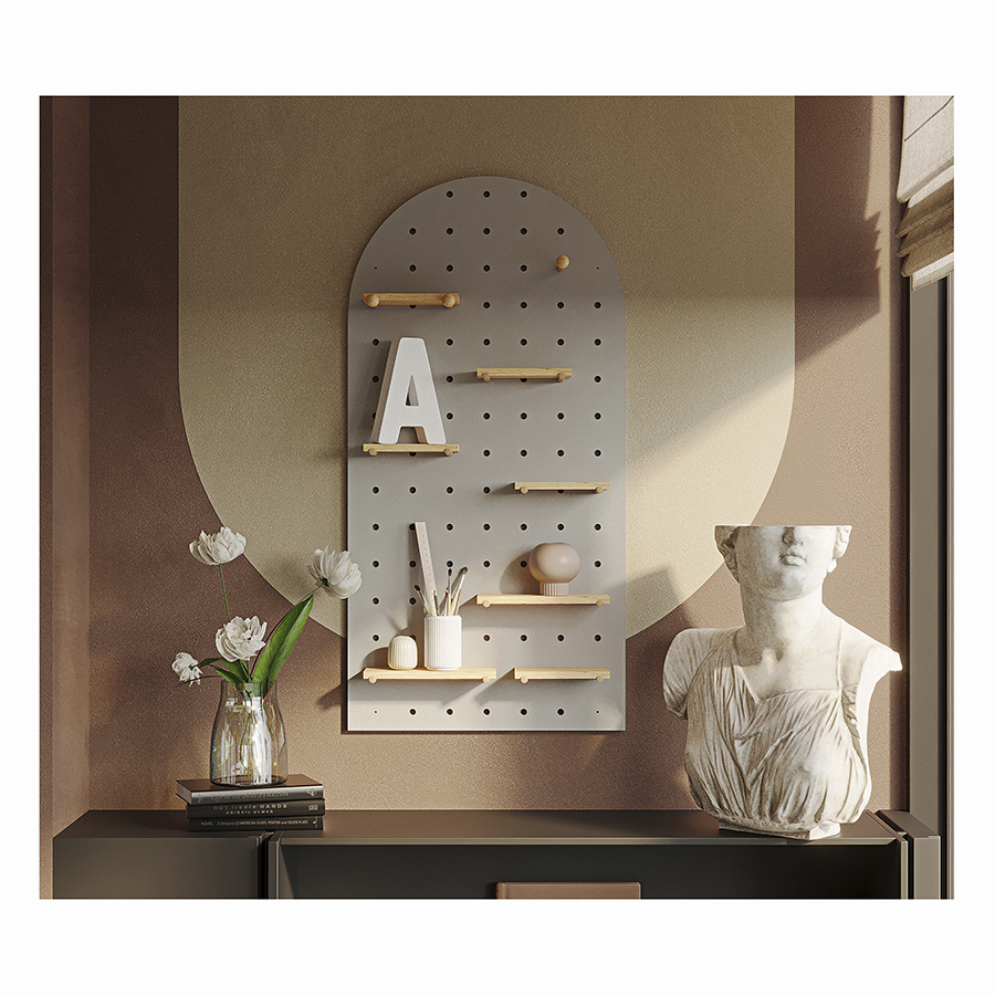 Пегборд Shely – многофункциональный предмет интерьера, который позволит удобно разместить различные аксессуары: наушники, декор, книги, игрушки, рамки с фотографиями, часы, цветочные горшки, сумки и многое другое. Конструкция предусматривает наличие горизонтальных полок и специальных держателей. Благодаря минималистичному дизайну и нейтральному цветовому решению модель прекрасно вписывается в любое оформление комнаты. Настенный монтаж обеспечивает компактное размещение. Практичные материалы гарантируют изделию износостойкость и долгий срок службы.