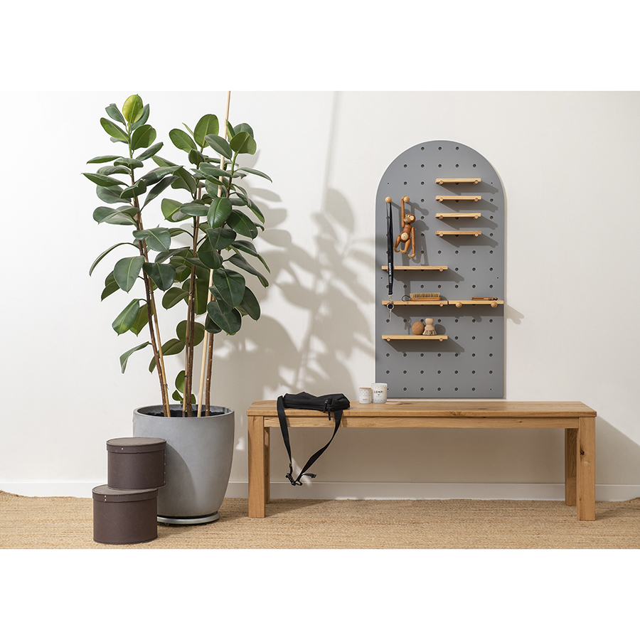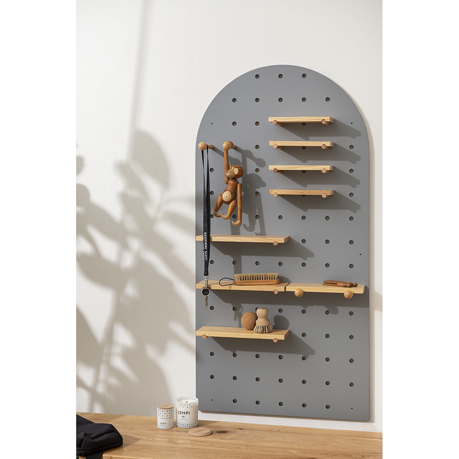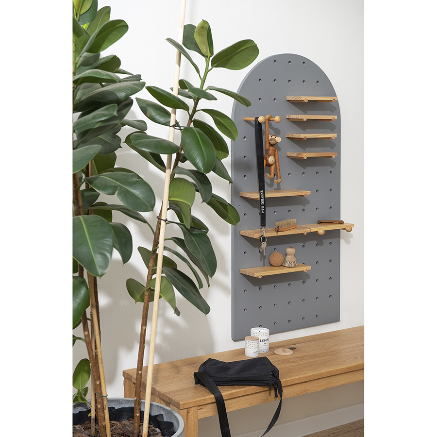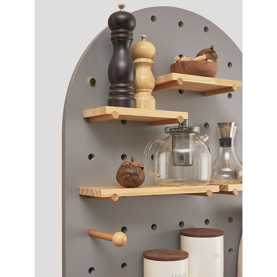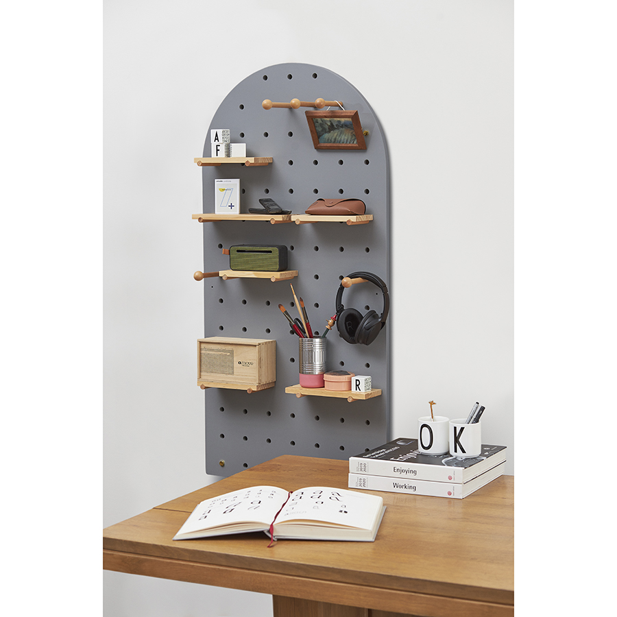 Пегборд Shely – многофункциональный предмет интерьера, который позволит удобно разместить различные аксессуары: наушники, декор, книги, игрушки, рамки с фотографиями, часы, цветочные горшки, сумки и многое другое. Конструкция предусматривает наличие горизонтальных полок и специальных держателей. Благодаря минималистичному дизайну и нейтральному цветовому решению модель прекрасно вписывается в любое оформление комнаты. Настенный монтаж обеспечивает компактное размещение. Практичные материалы гарантируют изделию износостойкость и долгий срок службы.