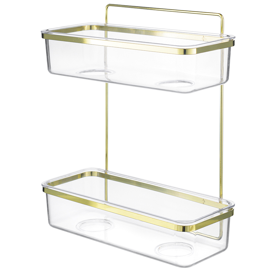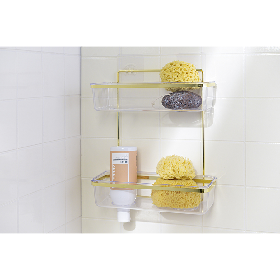 Полка настенная двухъярусная Siv удачно впишется в интерьер любой современной ванной комнаты, создав пространство для удобного размещения душевых принадлежностей: шампуня, мочалки, мыла и др. Модель сочетает в себе минималистичный дизайн и износостойкие материалы. Каркас изготовлен из железной проволоки с антикоррозионным покрытием. Контейнеры для хранения выполнены из практичного полистирола, отличаются хорошей вместительностью. Полка легко монтируется к стене с помощью многоразовых силиконовых наклеек Magic-loc. Не требуется сверление. Крепления идут в комплекте.